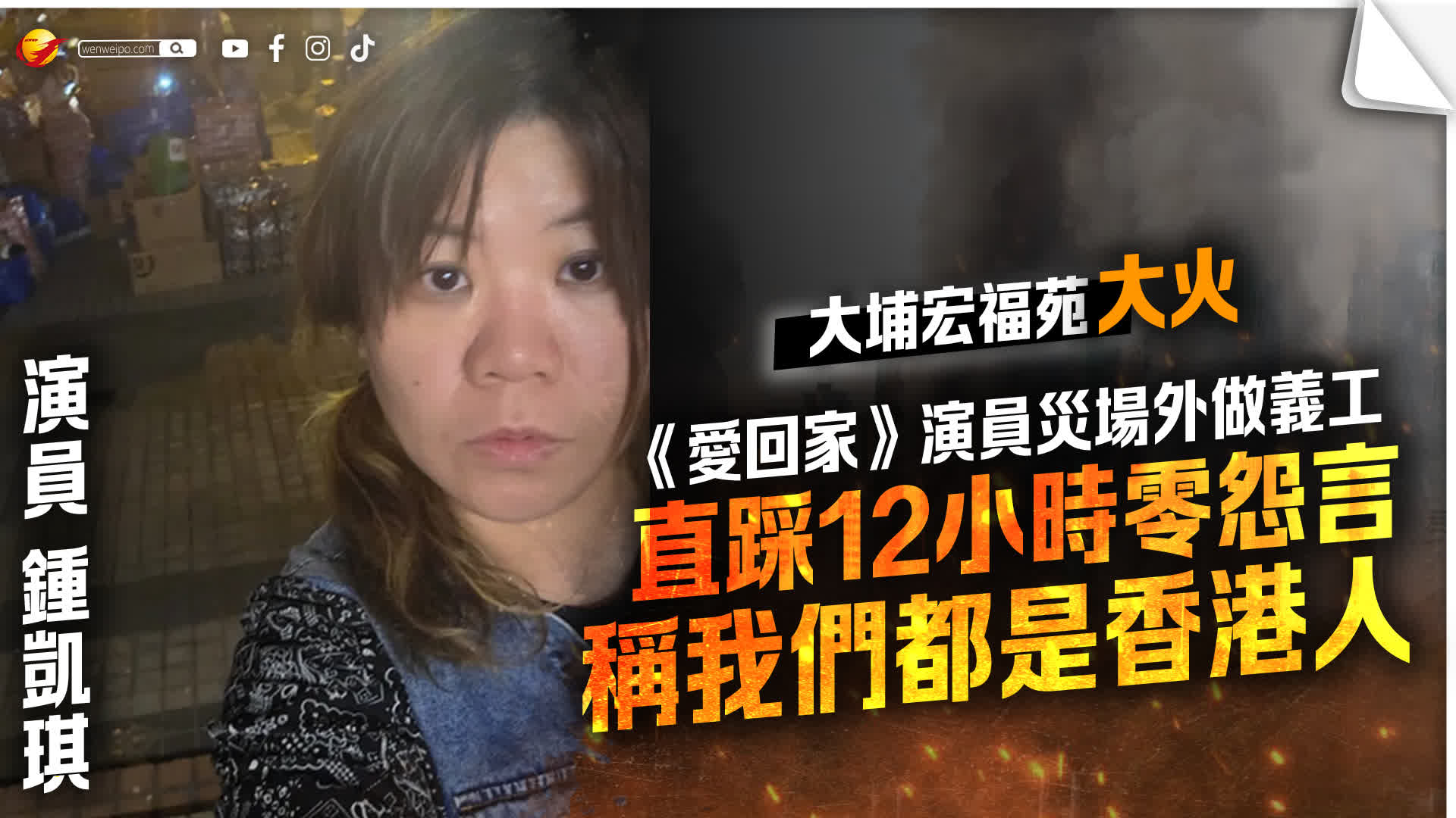 大埔宏福苑五級大火,不少市民自發前往災場外,為受災人士送上支援與溫暖。演員鍾凱琪亦是其中之一,她自夜晚起投入義工工作,連續服務12小時直至翌日早晨,一晚步行了三萬步,毫無怨言。
