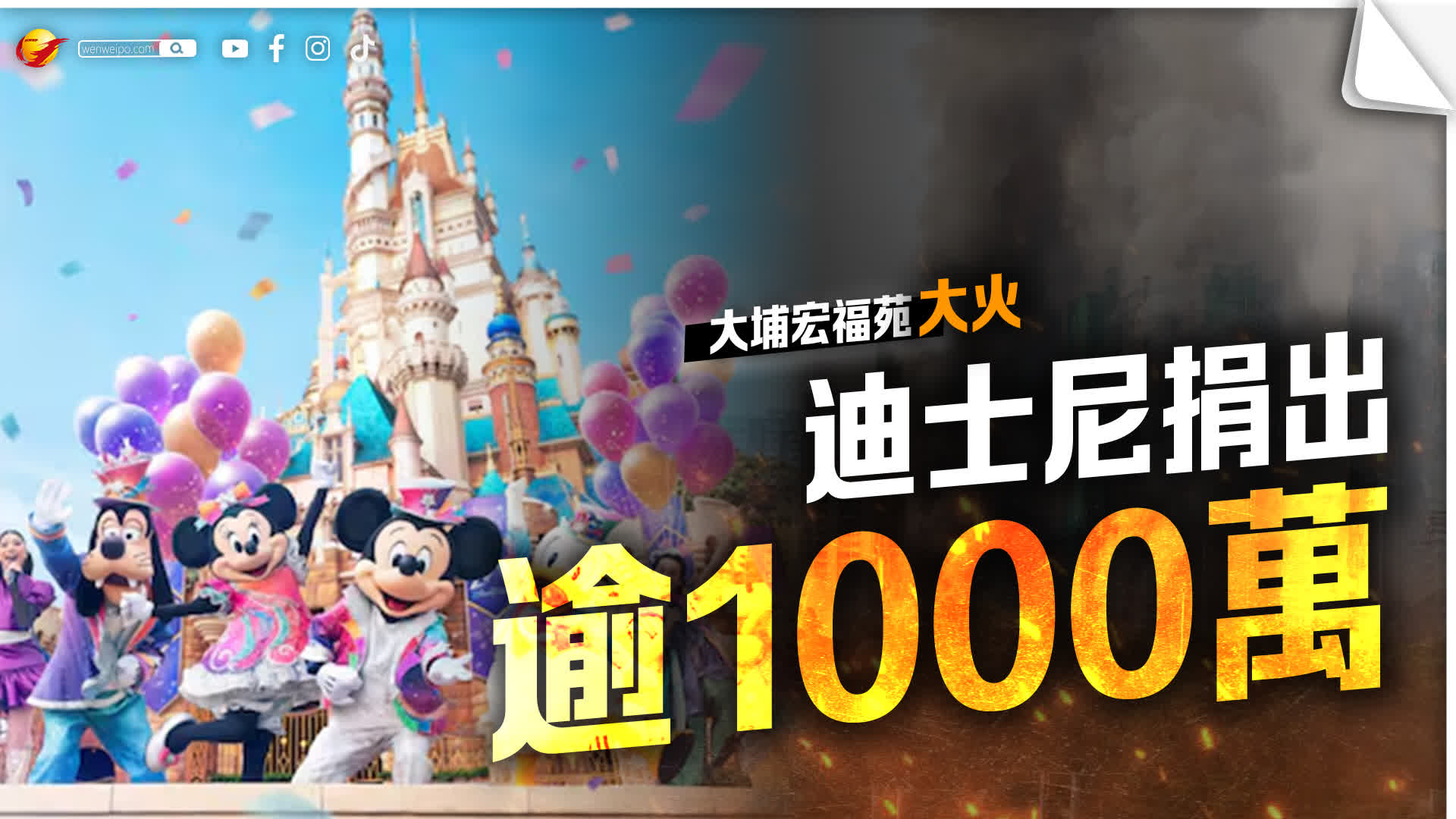 大埔宏福苑五級大火,造成重大人員傷亡和財產損失,迪士尼今日(12月1日)表示,正與本地機構及非牟利組織緊密合作,捐出超過1000萬港元現金及物資,提供即時援助及持續支援受大埔火災影響的社群。