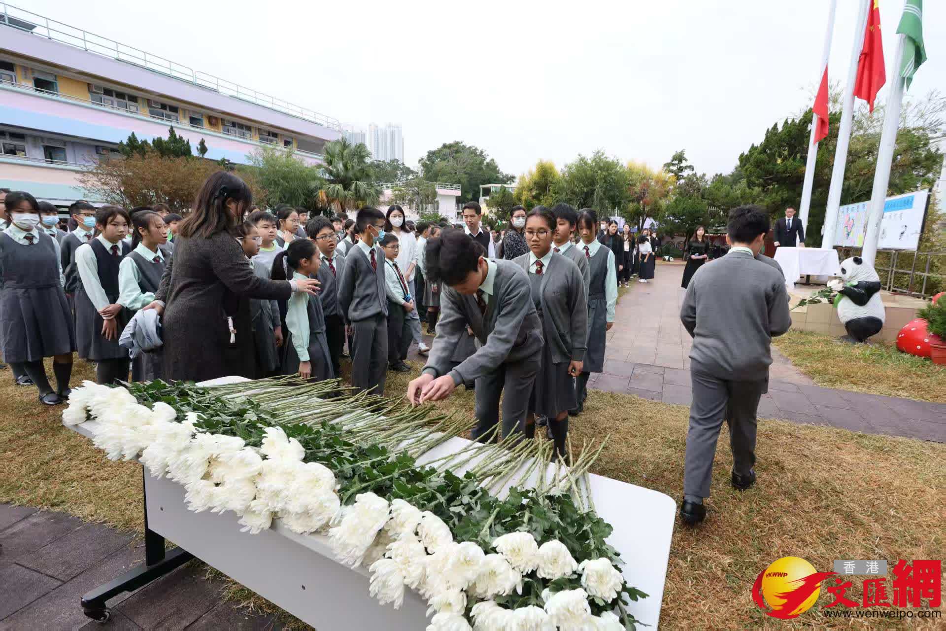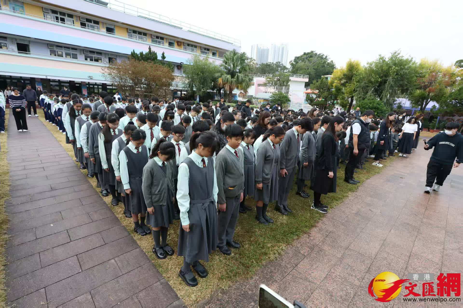 上午7時50分,在該校學生升旗隊的帶領下,全校師生進行下半旗誌哀。其後各班學生代表、校長及教職員逐一上台獻花。該校小六學生兼升旗隊成員李芯穎表示,對大埔火災感到十分悲傷,希望可以向受影響災民送上心意卡,「衷心希望在各方幫助下,他們能夠盡快走出陰霾,重建家園。」芯穎又提到,近日看到大量市民主動捐贈物資,充分體會到香港人守望相助的精神,她又特別向一眾消防和救護人員,致以最崇高敬意。