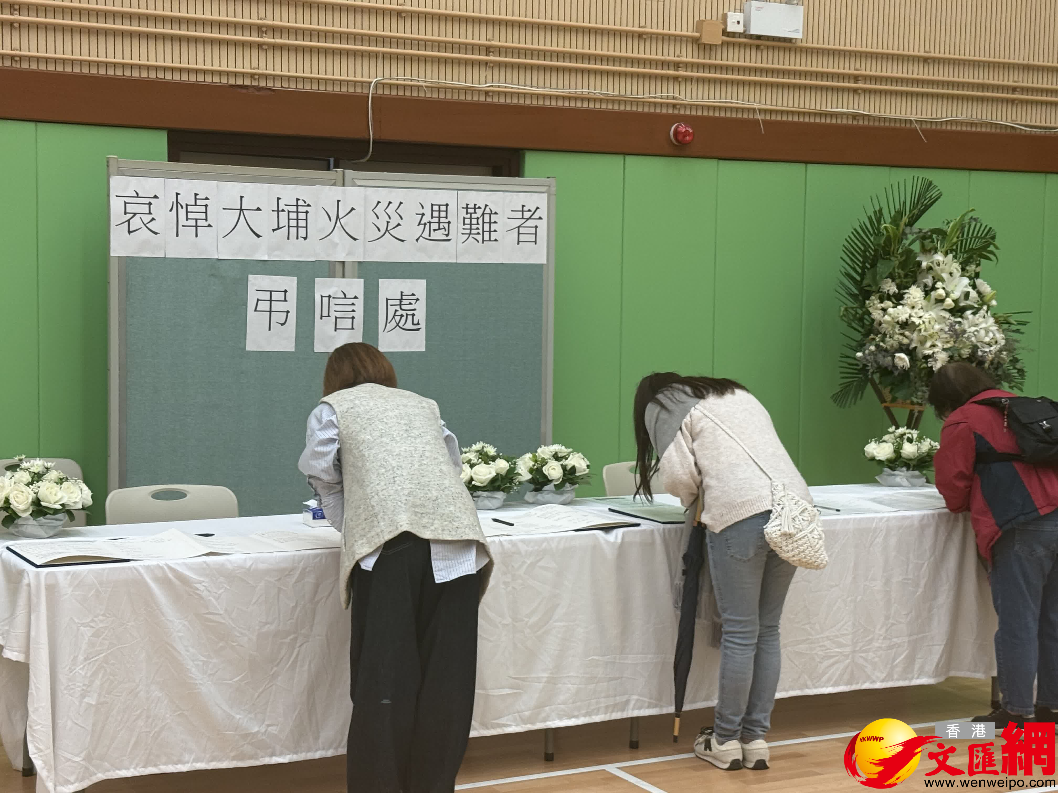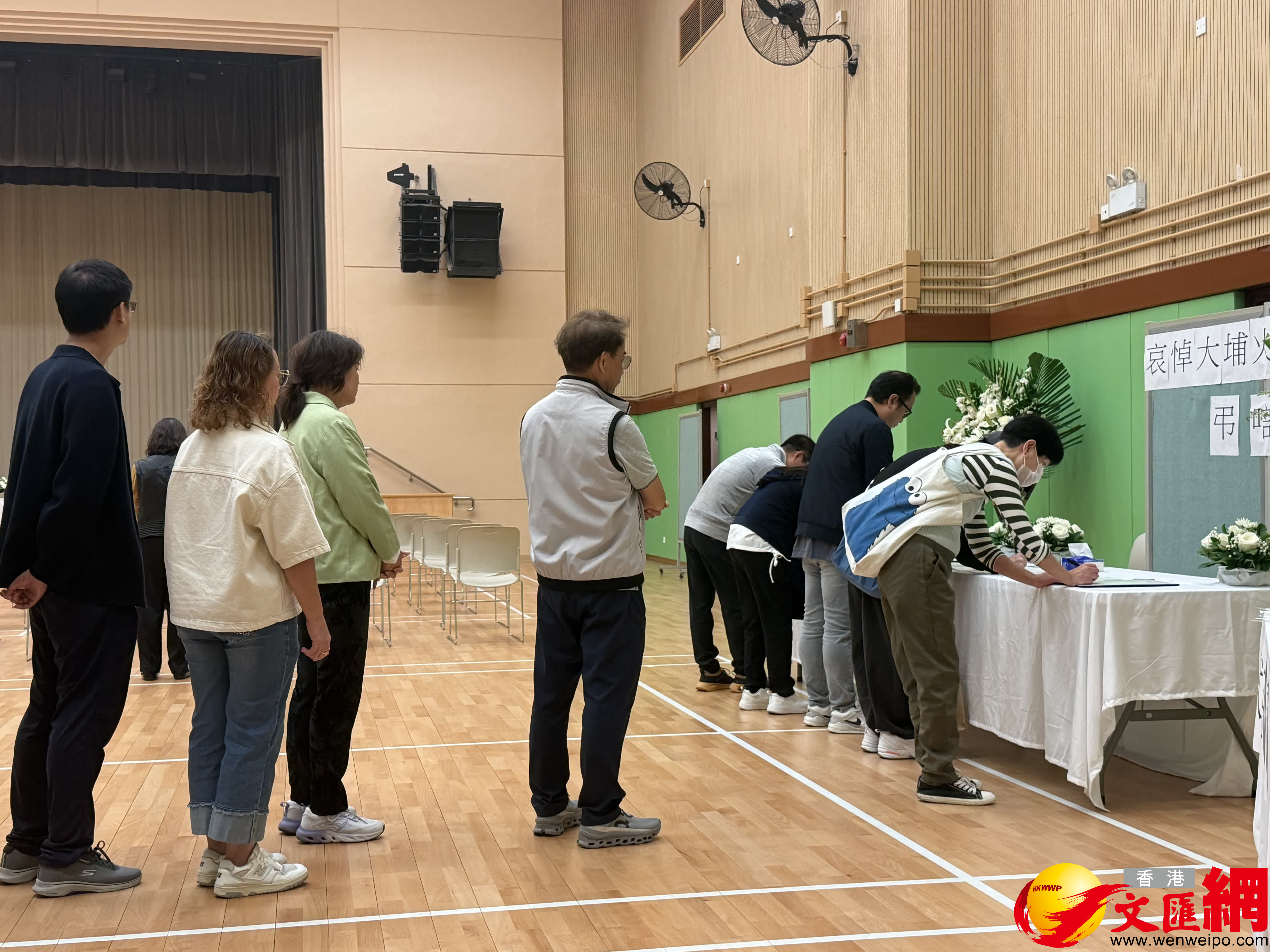 (香港文匯報記者 田至韌)為表達對大埔宏福苑火災罹難者的沉重哀悼,特區政府一連三日在全港18區設置弔唁處,今天(1日)是最後一日供市民簽署弔唁冊,以表達對罹難者的深切悼念。今日下午在荔枝角社區會堂弔唁處,有非常多的市民參與,對罹難者進行悼念,送上祝福。