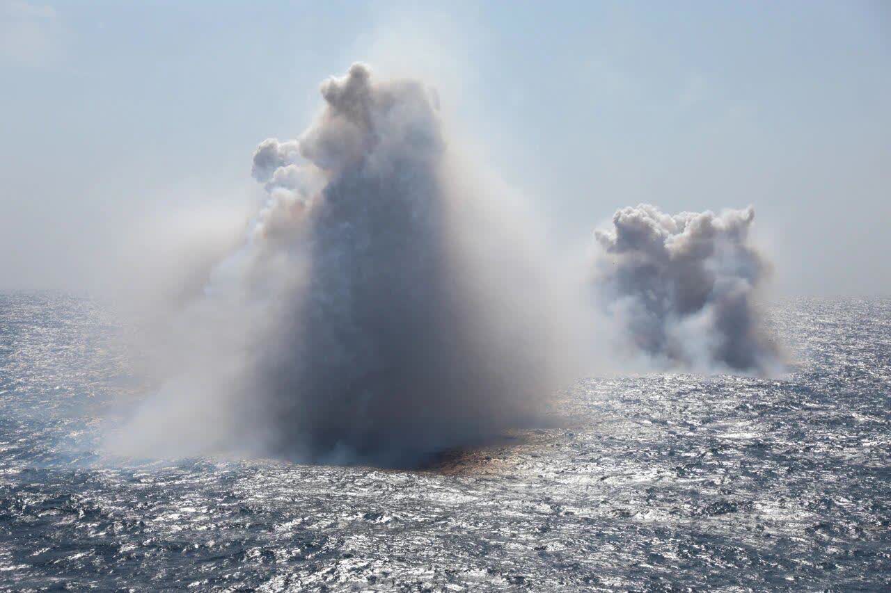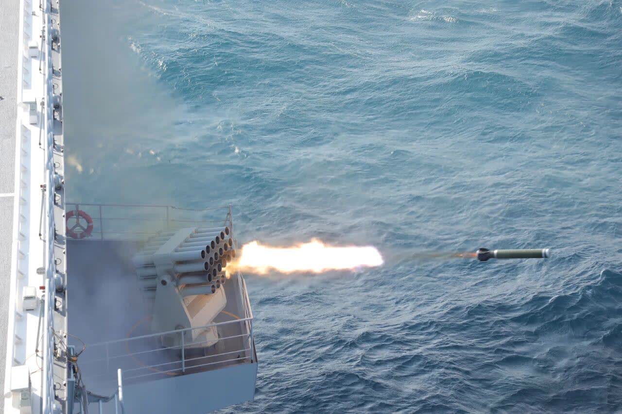 「發射!」湖北艦發射數枚干擾彈實施對「敵」干擾,編隊各艦迅速佔領指定射擊陣位,對空中目標進行火力打擊。一時間,海上煙幕繚繞,空中威脅被成功化解。