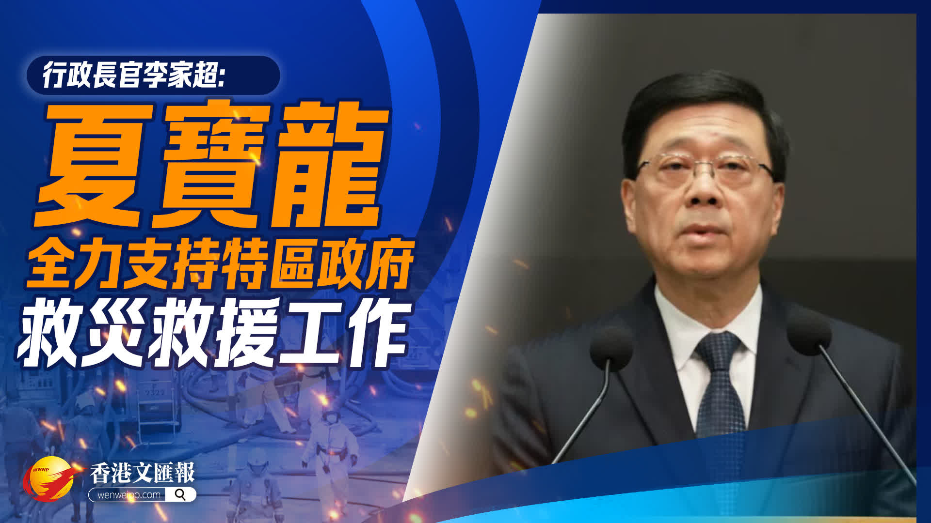 行政長官李家超今日(12月2日)在行政會議前見記者時表示,中央港澳工作辦公室主任夏寶龍全力支持特區政府救災救援工作。