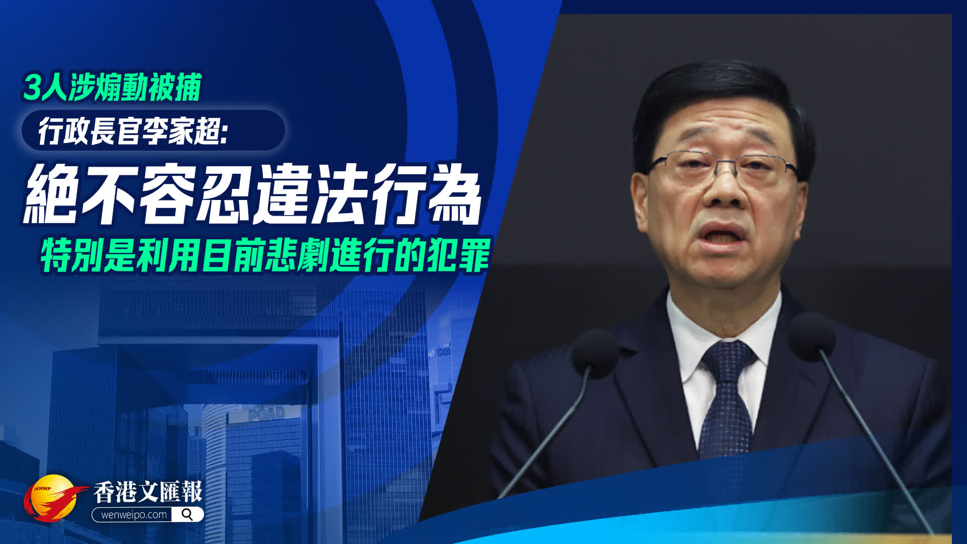 香港文匯報訊(記者 蕭景源)大埔宏福苑上周三(11月26日)發生的五級火至今至少造成151人死亡及79人受傷,仍有30多人失聯。在中央和香港特區政府、香港和內地民間全力救災之際,竟有別有用心之徒企圖「以災亂港」。警方國安處日前拘捕3名男女,涉嫌利用災情作出意圖煽動仇恨政府的罪行。行政長官李家超今日(2日)回應事件時,強調絕不容忍任何犯罪行為,特別是利用目前悲劇進行的犯罪活動。