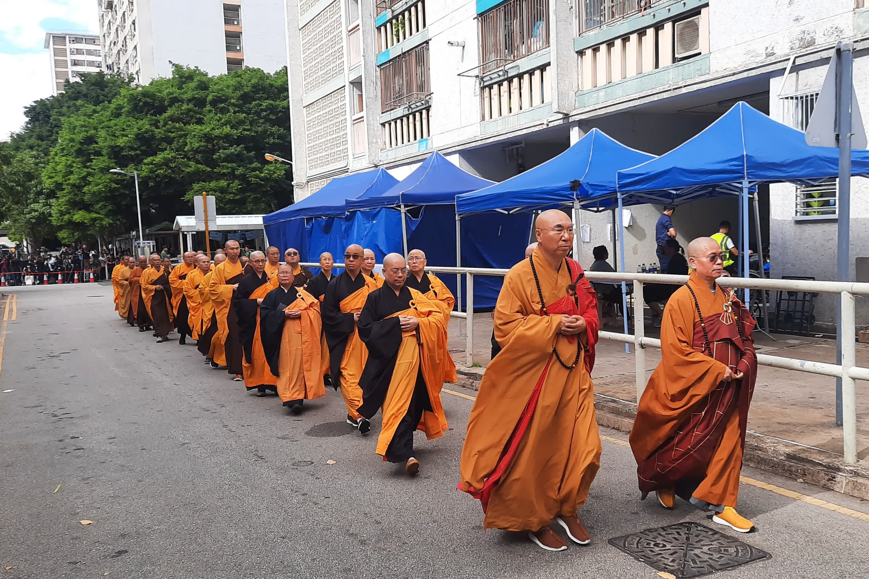 法會由香港佛教聯合會會長寬運法師、寶蓮禪寺方丈淨因法師率諸山大德主持,包括佛聯會董事會提輪法師、僧徹法師、智德法師、演慈法師、悟藏法師、修岸法師、衍璇法師等三十位法師。法會誦《佛說阿彌陀經》、《心經》、《往生咒》等等經咒,祈求佛菩薩加持,令倖存者緩減內心傷痛,亡者獲得超生善道,共修者福慧增長。