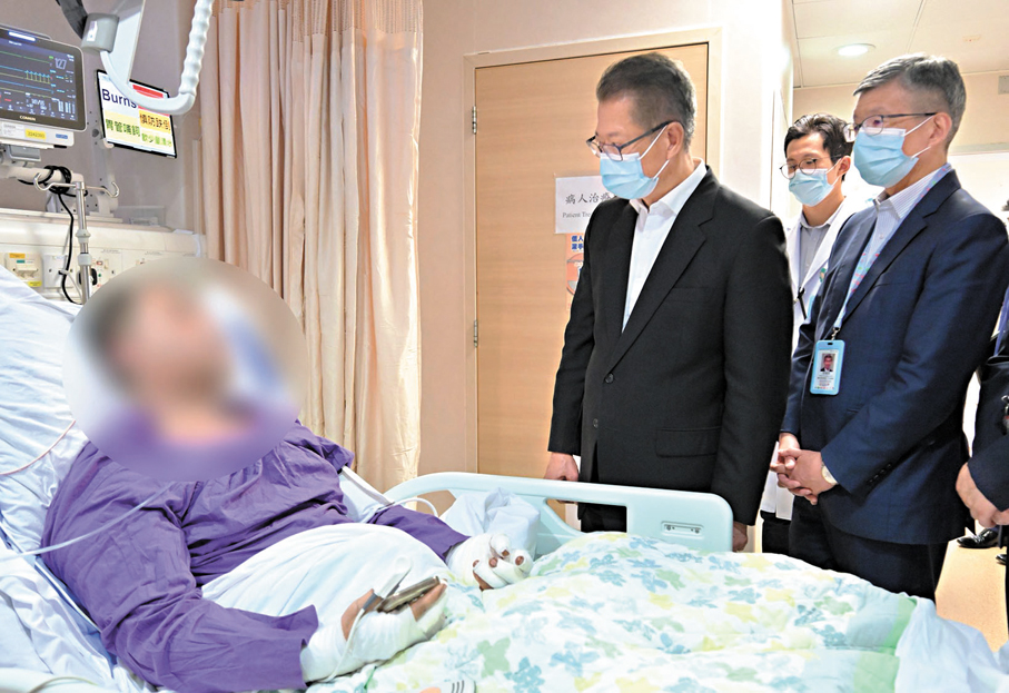 香港文匯報訊(記者 張茗)香港特區政府財政司司長陳茂波昨日到訪醫院、小瀝源消防局,以及採訪罹難工人遺屬,其間慰問火災中的傷者,了解傷者的康復情況、家屬需要,和向前線人員打氣。他在社交平台上表示,大埔火災善後工作正全速推進,不同部門正各司其職,包括醫護人員悉心治療傷者與照料復康者、社署協助災民應付生活的需要等。整個社會都心繫死傷者和災民,對全面調查以找出事件成因,以及進行全面改革以避免慘劇再發生,更有着清晰而一致的要求,而這也是特區政府明確會走的方向。