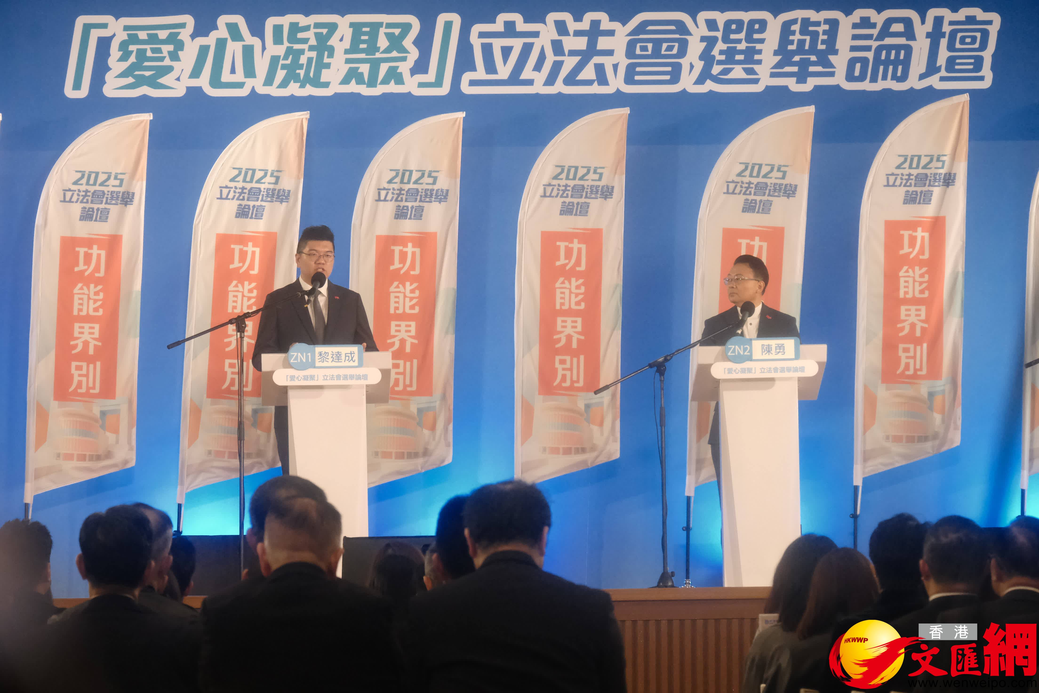 (大公文匯全媒體報道)特區政府於今日(12月3日)和周四(12月4日)恢復舉辦選舉論壇。因應現時的情況,論壇現名為「愛心凝聚」立法會選舉論壇。今日上午舉行功能界別-全國人大、全國政協及有關全國性團體代表界論壇,下午舉行功能界別-保險界論壇和功能界別-飲食界論壇;晚上則舉行功能界別-教育界論壇。今日上午,人大政協界兩名候選人ZN1號黎達成和ZN2號陳勇同台闡述政綱。
