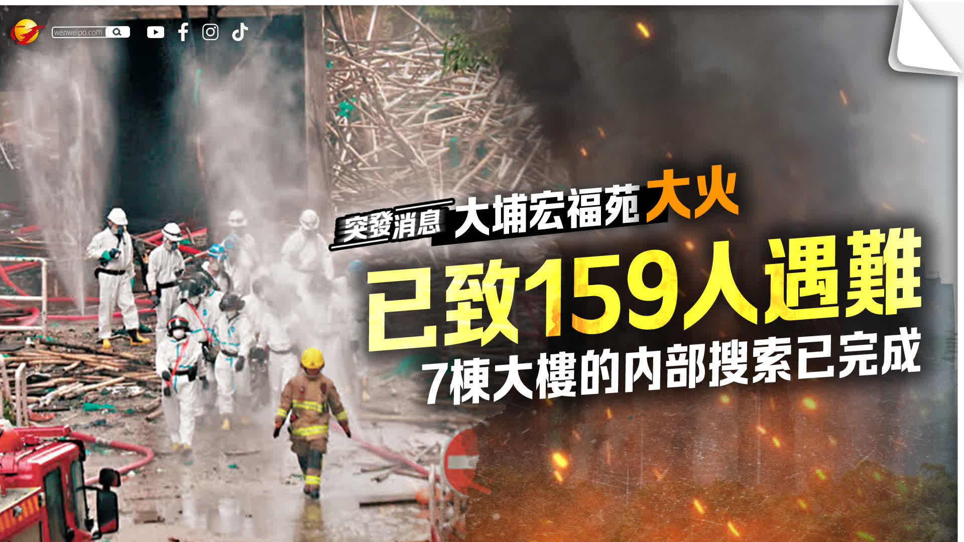 大火搜救工作持續進行,目前已完成了7棟大樓的內部搜索。