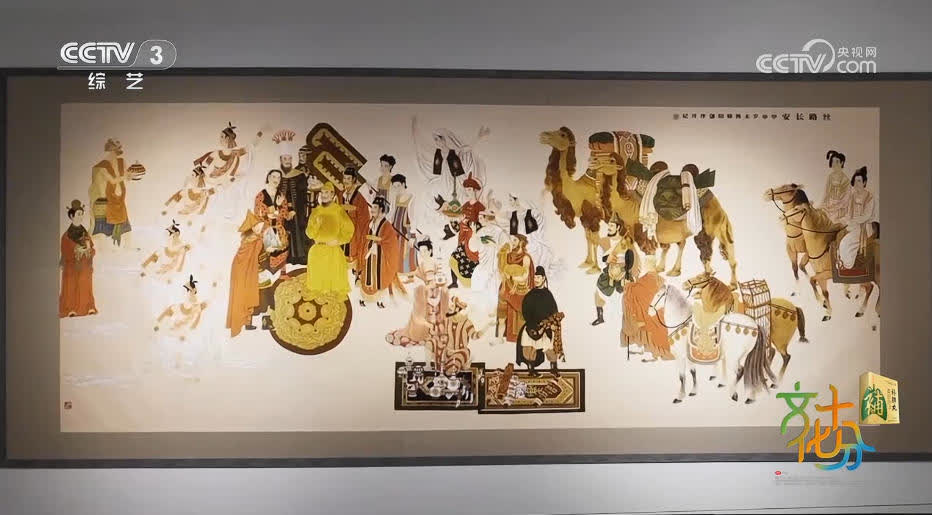 1985年,楊曉陽從西安出發,沿絲路古道一路騎行到新疆,親身感受到了中國西部絲路沿線無與倫比的自然風光、歷史風俗與民族風情。40年來,他聚焦絲路題材,創作了《鴻蒙初開》《東歐生活》《塞上三日》等大量作品。在《絲路長安》重彩作品中,楊曉陽用工筆重彩的傳統中國畫語言表現絲路長安的風土人情與盛世氣象,以豐厚的歷史感悟、瑰麗的藝術想像、跨時空的浪漫手法呈現作者的思路心象。