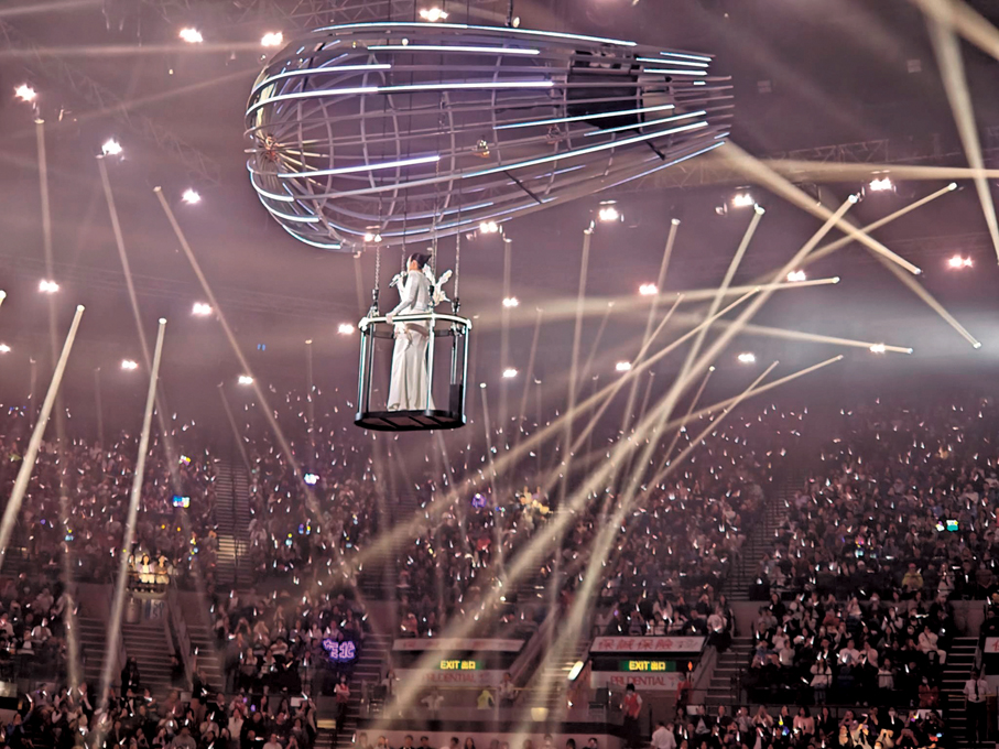 而千嬅的多套舞台服非常優雅漂亮,別以為開三面台會省錢,她用了20多位舞蹈員、管弦樂團、多個升降台。而最厲害應是站在飛船上從紅館頂空降到舞台中,她說腳仔軟,歌迷更替她緊張,演唱會出品人是千嬅丈夫丁子高,不禁說句真夠狠,看出他們夫妻互信程度極高。