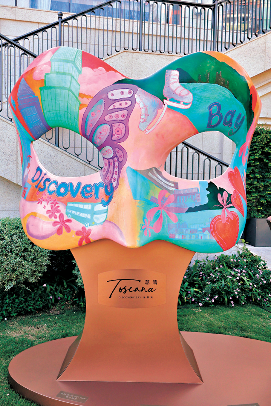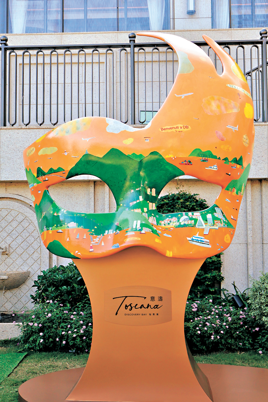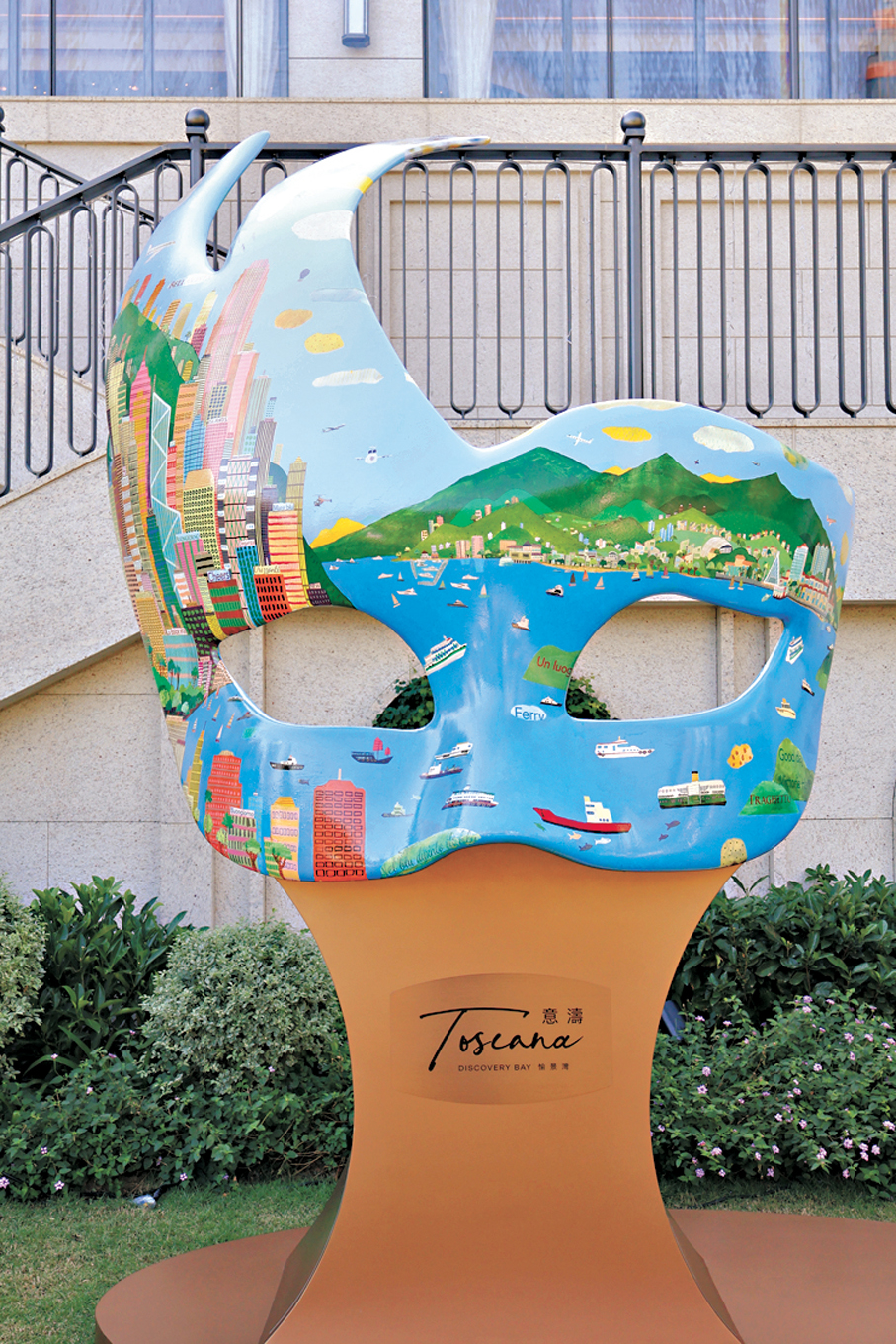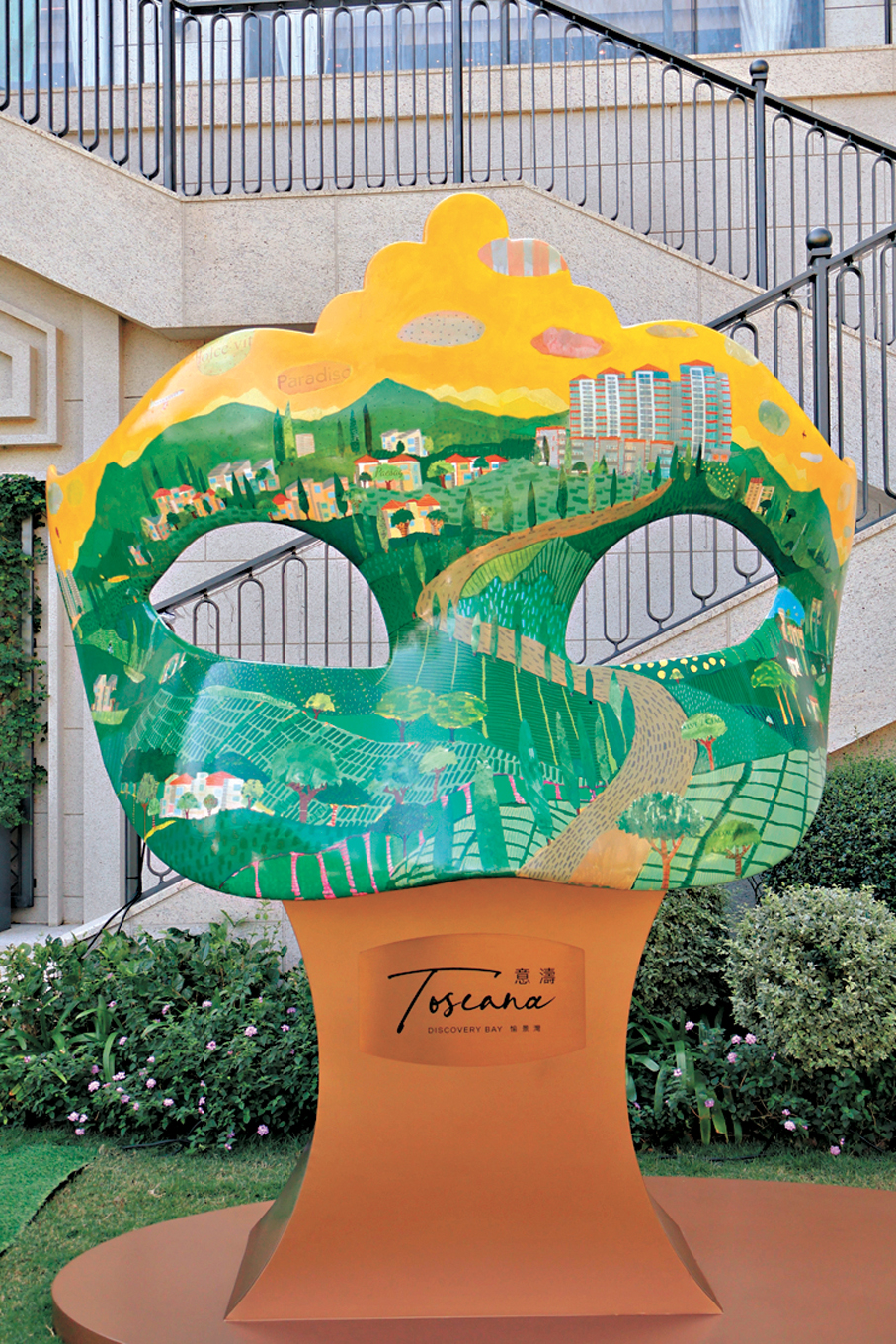 「愉景灣藝術展覽︰從未如此近」是愉景灣全新意式大型海景豪宅區「Toscana 意濤」的開幕展覽。Francesco Lietti以這個地點為靈感,打造出三個大型彩繪面具。「愉景灣有很多意式建築,所以我們想到一些能代表意大利的元素,比如人們在嘉年華中常用的面具。」Francesco在接受香港文匯報記者專訪時分享。