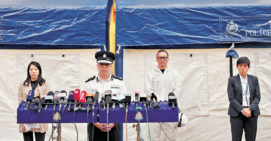 警務處處長周一鳴昨日交代火災的最新調查進展,證實繼日前以涉嫌誤殺罪名拘捕15人外,另外拘捕多6人(44歲至55歲),他們是消防裝置承辦商,涉嫌向消防處作出虛假陳述,訛稱工程期間不會關上消防警鐘,目前其中一人已獲准保釋候查,其餘5人仍被扣查。案件累計已有21名工程相關人等被捕,當中11人同時被廉政公署拘捕,案件仍在調查中。
