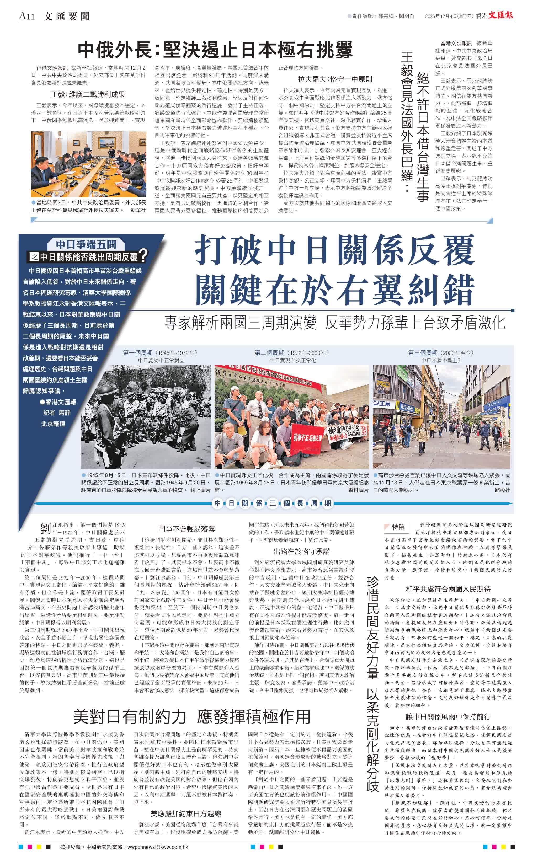 對外經濟貿易大學區域國別研究院研究員陳洋接受香港文匯報專訪時表示,受日本首相高市早苗發表涉台錯誤言論的影響,當下的中日關係正經歷前所未有的複雜與挑戰。在這樣緊張氛圍下,極易產生「非黑即白」的對立心態,日本仍有很多喜歡中國的民間友好人士,他們正是化解分歧的重要力量,應保護、珍惜和培育中日兩國民間的友好力量。