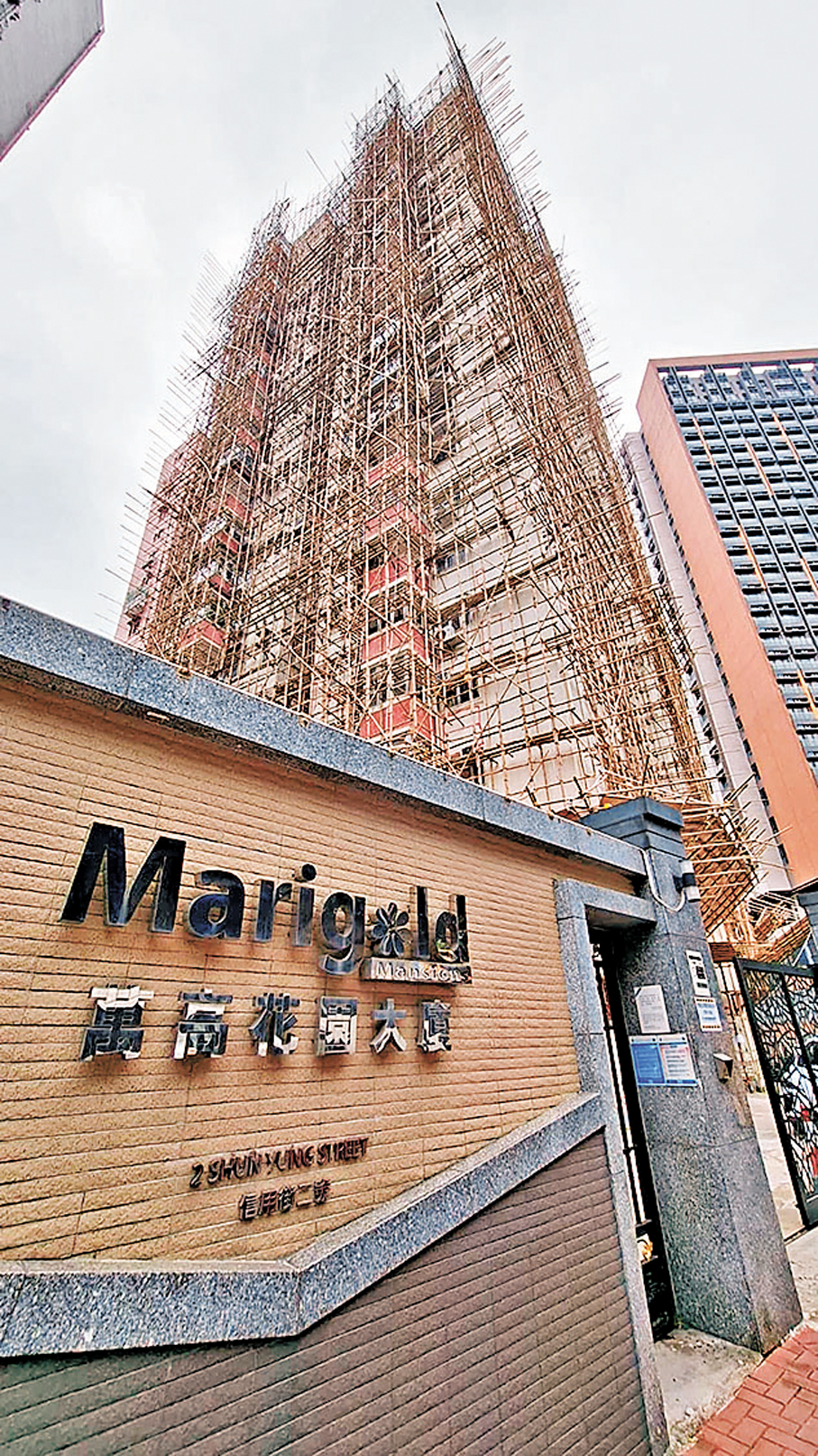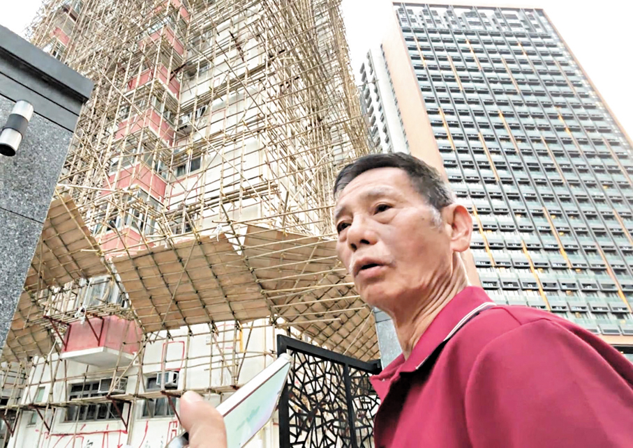 B座另一居民蕭先生稱,有關維修工程共涉及約1,100萬元,每戶要出近15萬元。外牆的棚網約於半個月前才掛上,在大埔宏福苑火災後,翌日曾有消防人員到來巡視,再隔一日則有警方人員到過,均未表明棚網有問題。