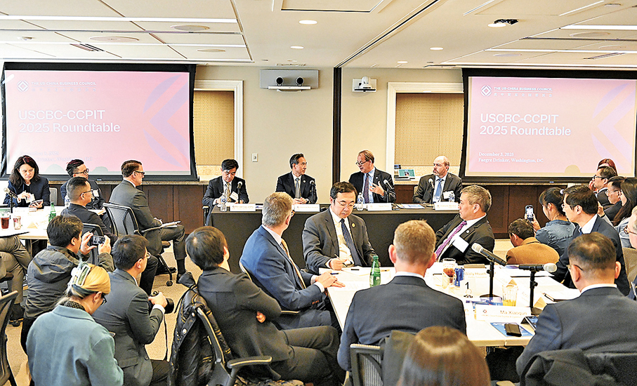 香港文匯報訊 據新華社報道,中國貿促會組織中國企業家代表團當地時間3日在華盛頓與美中貿易全國委員會及其會員企業進行交流座談。來自物流、科技、金融、能源、醫療等行業的中美企業代表逾80人參加活動。