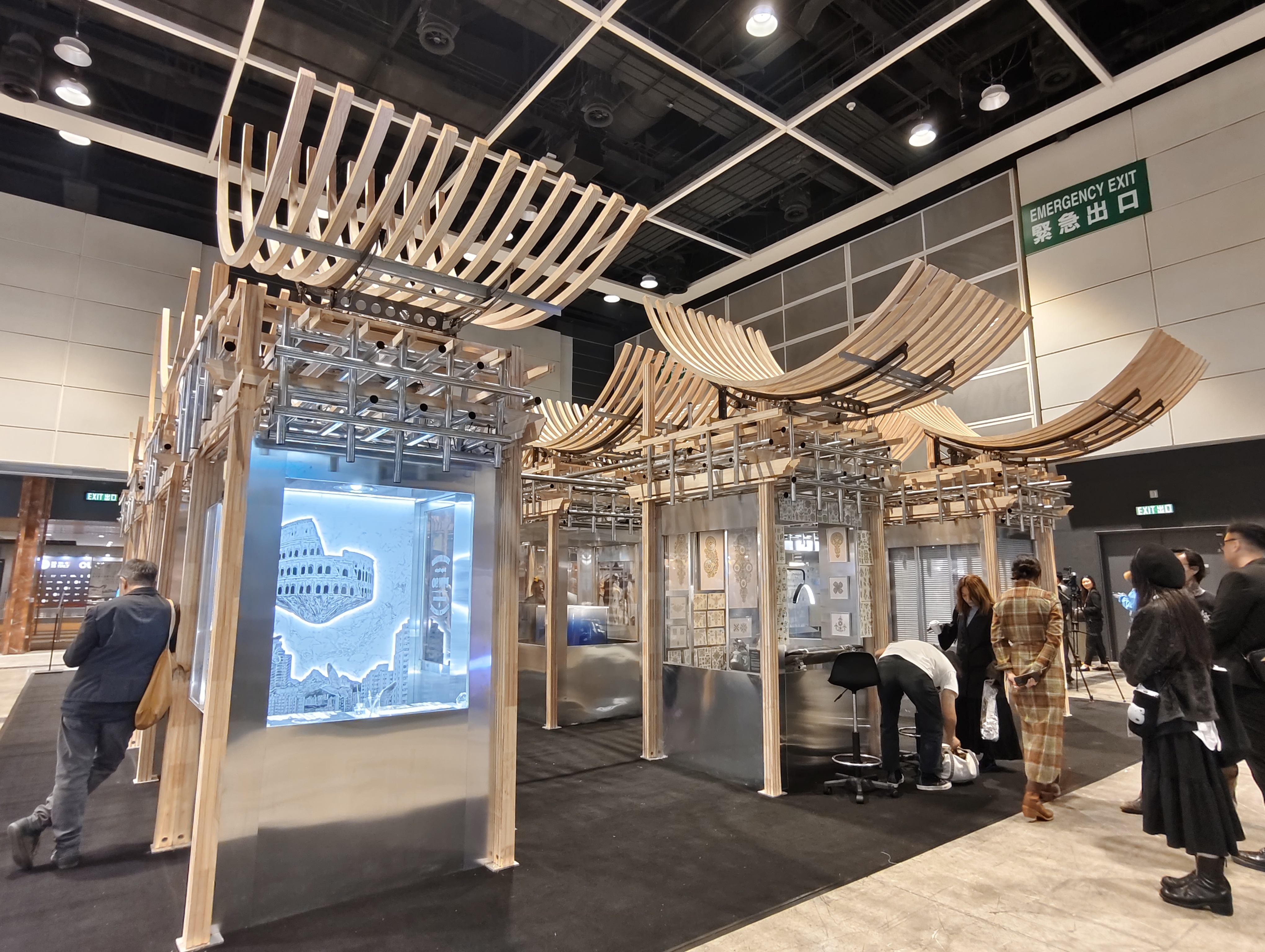走進展館,由香港知名設計師及新晉藝術家主導的重要跨文化空間呈現眼前。由國際設計大師陳幼堅(Alan Chan)擔任創意總監,並聯手UNVEIL LIMITED和蘇暢設計研究室策劃的「BOTTEGA HONG KONG」,以意大利雜貨店alimentari與香港「士多」為靈感,透過「開放式紙皮箱」結構重新詮釋日常生活美學,並匯集港意設計精英,包括香港殿堂級設計師及藝術家anothermountainman(又一山人)、LOEWE基金會工藝獎首位香港決賽入圍者吳頴賢(Didi Ng)、意大利時尚品牌FERRAGAMO、意大利經典設計家具品牌 Moroso、曾為Dolce & Gabbana Casa設計家品的玻璃藝術家Lucia Massari、頂級年輕意大利設計師之一Alessandro Stabile Design Studio、攝影藝術家David Leung等,展示港意文化交織的設計視野。