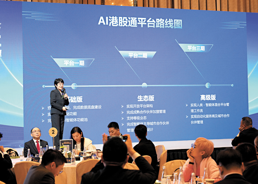 香港文匯報訊(大公文匯全媒體記者 李樂兒)在昨日舉行的「AI賦能·科技自立─中小企業創新與機遇高峰論壇」上,「AI港股通平台」首期正式上線。該平台首席技術官兼得分數字科技(珠海)董事長徐曉紅介紹,該平台本質上是一套圍繞「價值發現─價值創造─價值實現」的全鏈路系統,不僅服務於香港超過兩千家中小上市公司,也將為內地大量科創企業提供一條可持續、可規模化的資本化通道。