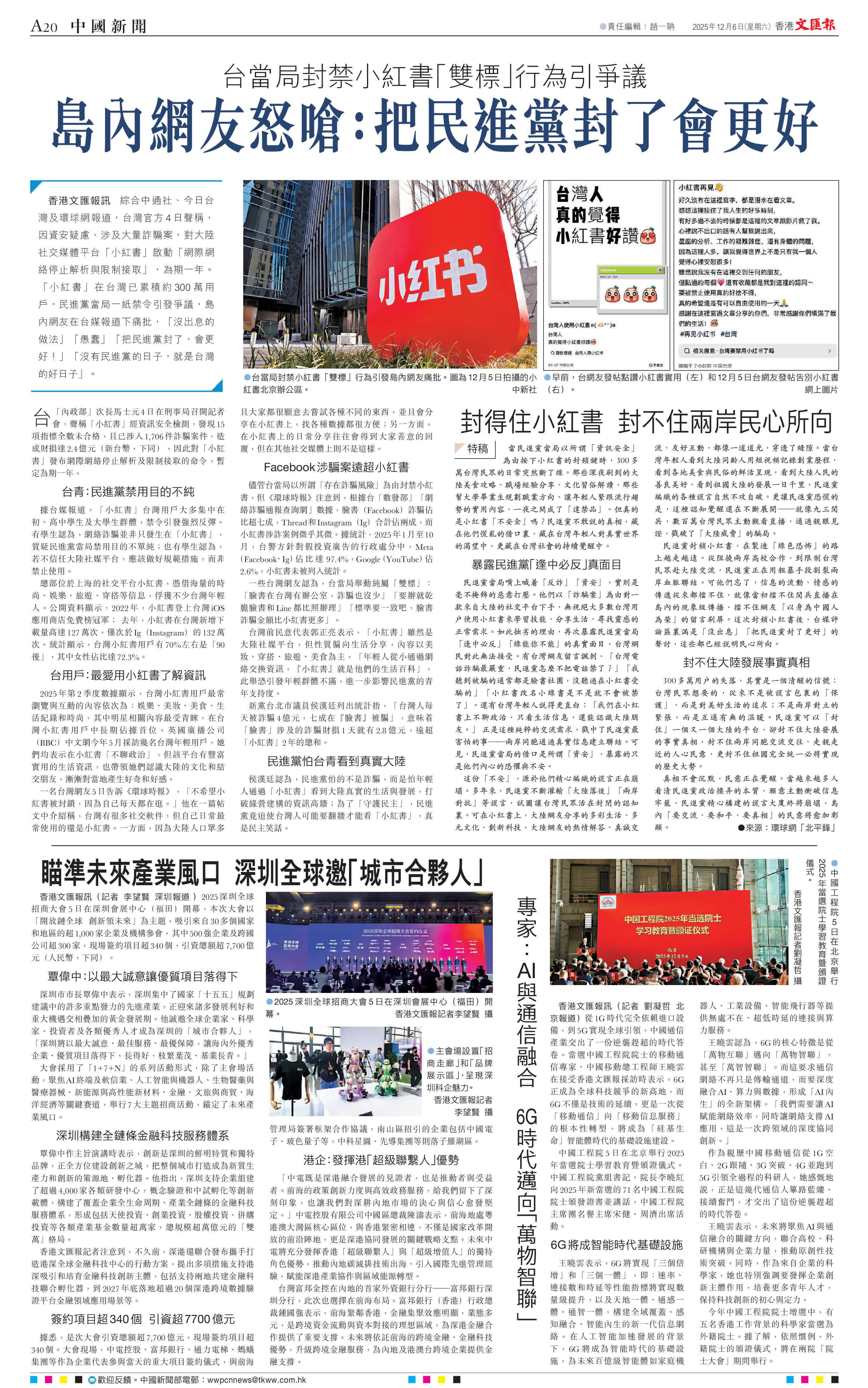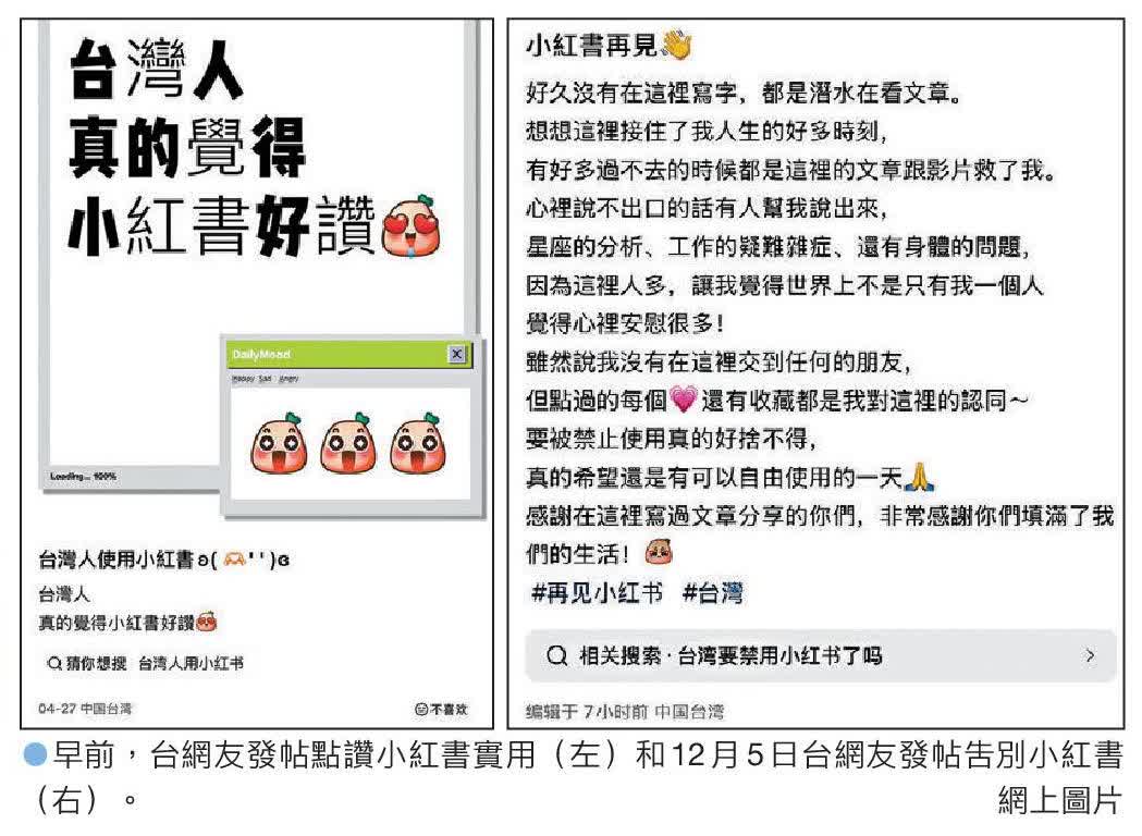 香港文匯報訊 綜合中通社、今日台灣及環球網報道,台灣官方4日聲稱,因資安疑慮、涉及大量詐騙案,對大陸社交媒體平台「小紅書」啟動「網際網絡停止解析與限制接取」,為期一年。「小紅書」在台灣已累積約300萬用戶,民進黨當局一紙禁令引發爭議,島內網友在台媒報道下痛批,「沒出息的做法」「愚蠢」「把民進黨封了,會更好!」「沒有民進黨的日子,就是台灣的好日子」。