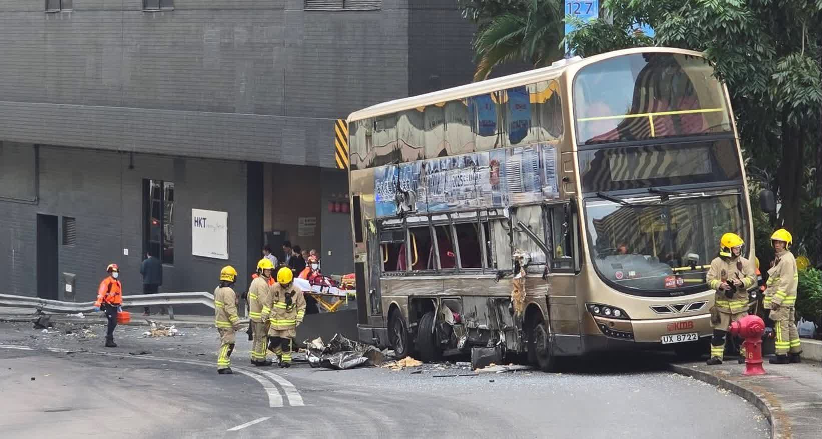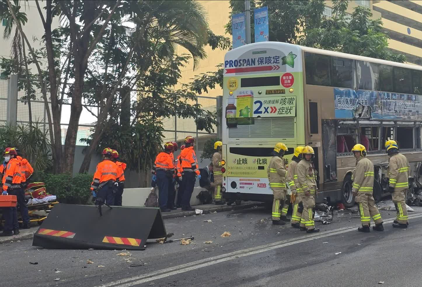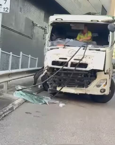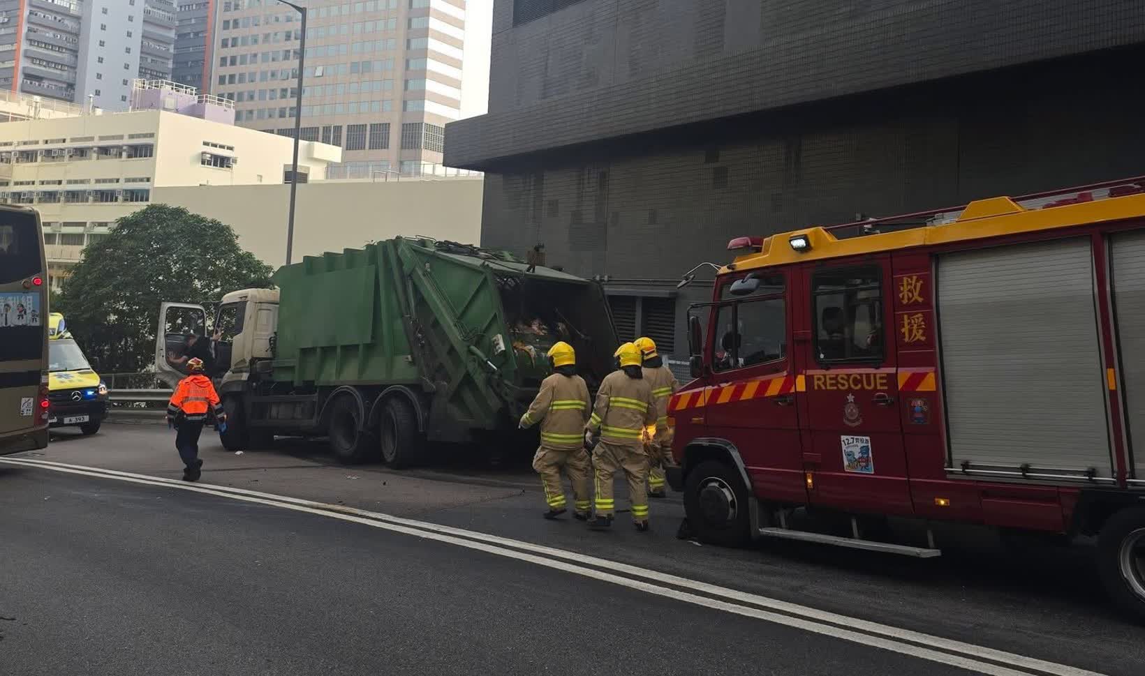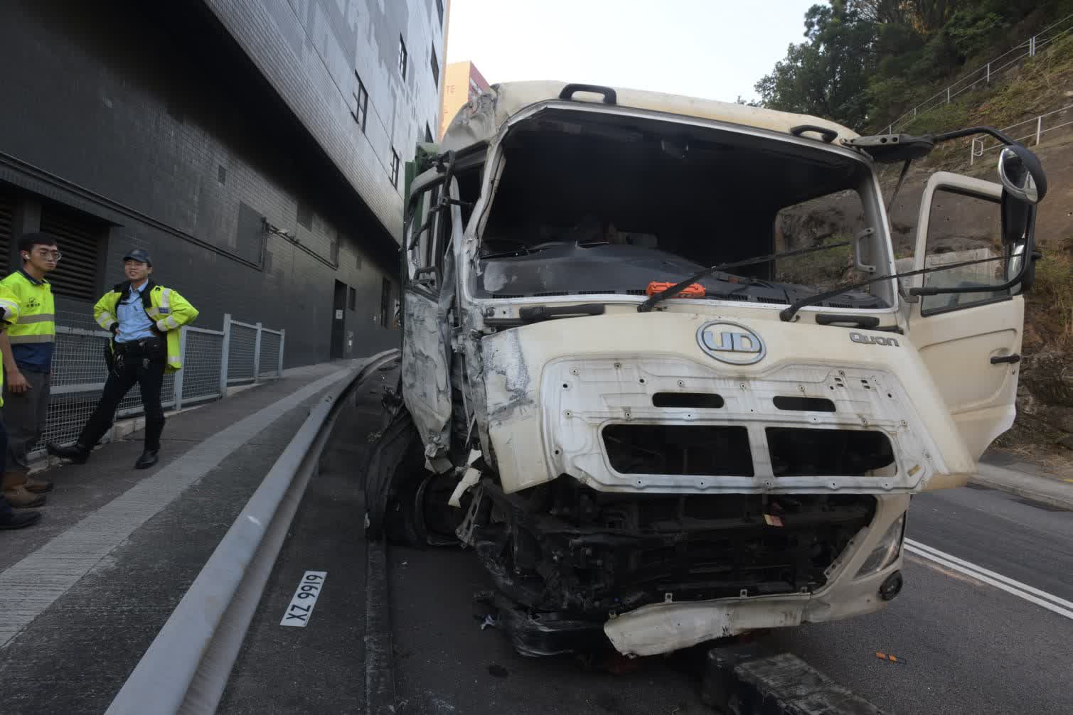 根據網上片段所見,涉事垃圾車的車頭嚴重損毀,撞風玻璃碎裂鬆脫,車廂內有一名男傷者待救;而涉事巴士則右邊車身嚴重損毁,多個車窗玻璃碎裂及車胎損毁,地上滿佈玻璃碎片及汽車零件。