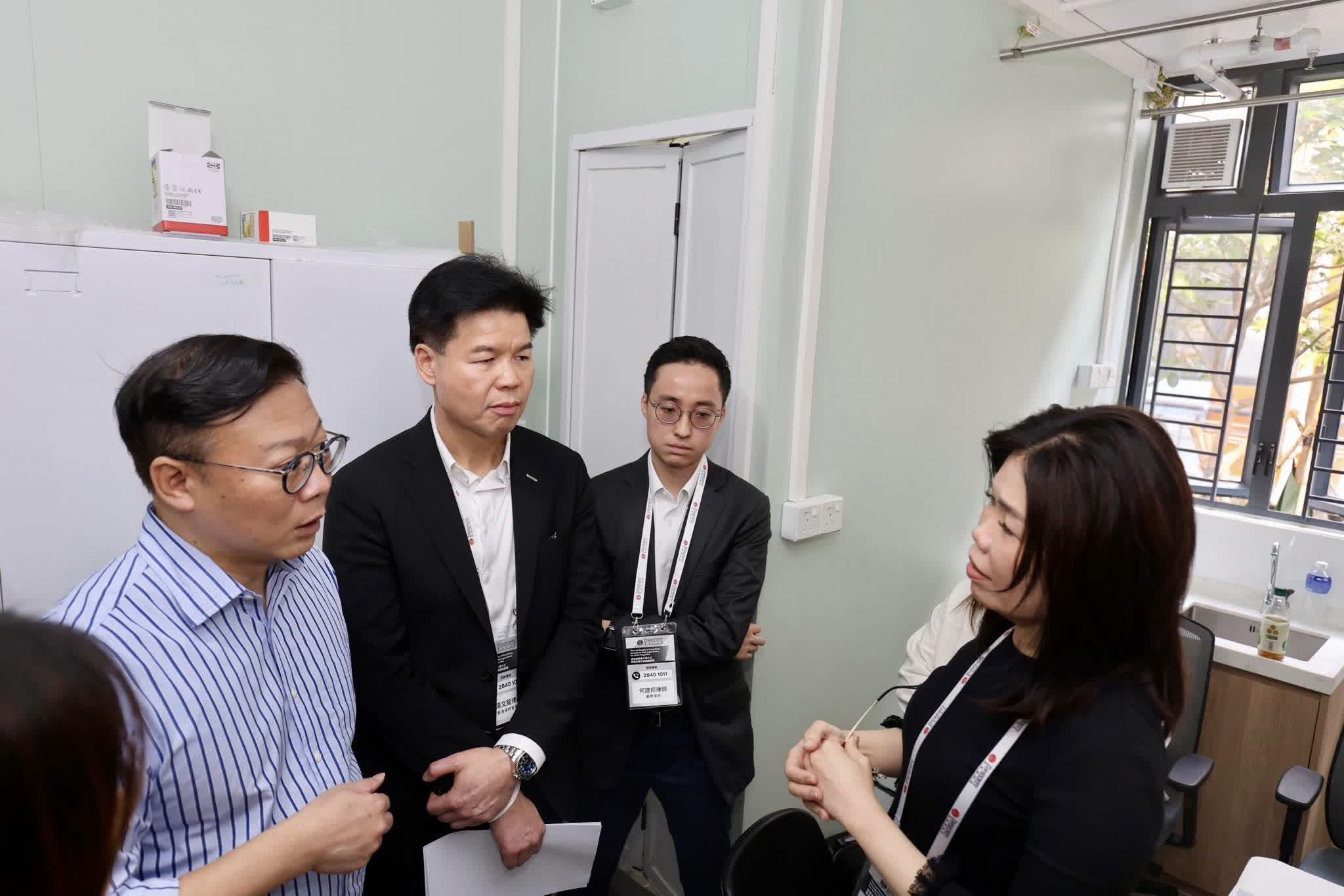 張國鈞今日親臨位於大埔、由善導會營運的過渡性房屋項目「善樓」,視察現場運作情況,並向當值的義務律師了解服務成效及居民反饋。他獲悉居民對服務站反應非常正面,義務律師連日來已處理多宗法律諮詢,涵蓋房產、按揭、人身傷亡賠償和遺產承辦等各種法律問題。居民亦提出保險、重建等涉及法律層面以外的疑問,反映災後恢復需社會各界同心協力解決。