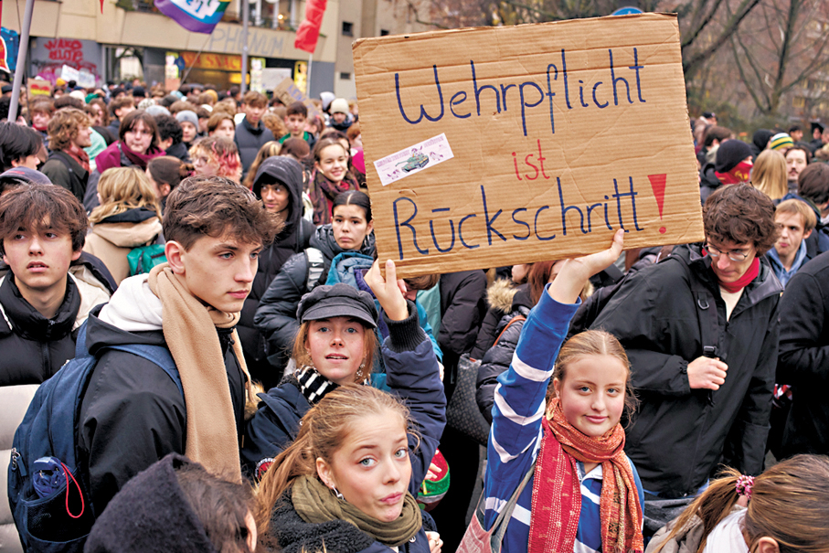 香港文匯報訊 德國國會聯邦議院上周五(12月5日)通過一項新兵役法案,旨在透過新的徵兵問卷與體測制度,將該國現役軍人數目由目前18.2萬增至26萬,並擴大預備役至20萬人。此舉引發全國約90個城鎮的學生於同日罷課示威,抗議政府強化軍事政策。