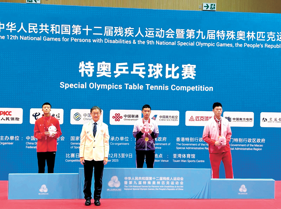 乒乓球齡約四年的港將李梓洋,今次首次參加殘特奧會便奪金而回,他直言滿意今次發揮,並指主場出戰有很大意義,「打得好好,覺得可以打贏對手,取勝很開心,最重要的是家人能夠在現場看我比賽。」李梓洋過往曾在主場出戰其他比賽,對他來說大賽與普通比賽的分別在於氣氛,「氣氛好好,第一次在主場打大型比賽,之前小型比賽沒有人會訪問我。」