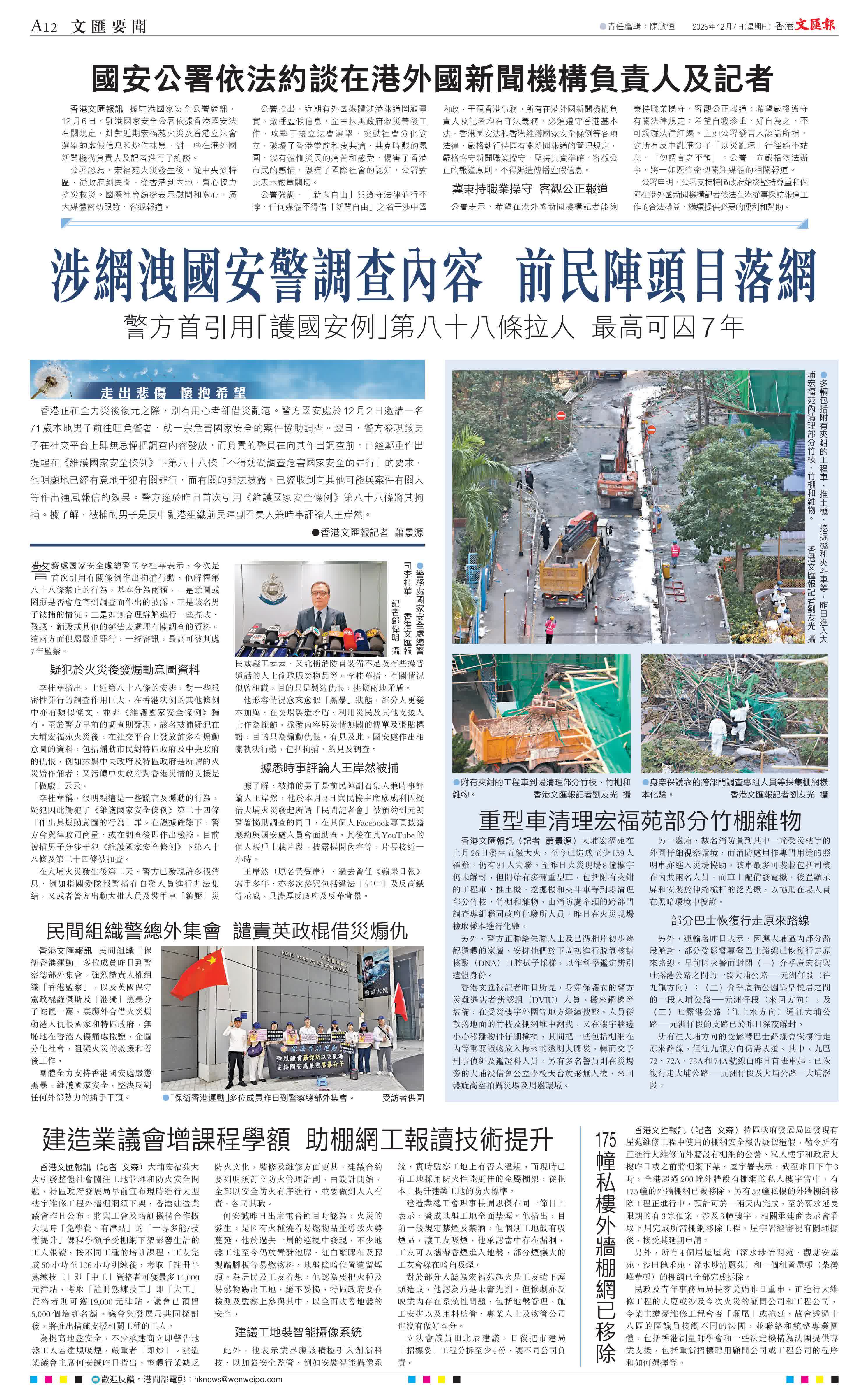 李桂華指出,上述第八十八條的安排,對一些隱密性罪行的調查作用巨大,在香港法例的其他條例中亦有類似條文,並非《維護國家安全條例》獨有。至於警方早前的調查則發現,該名被捕疑犯在大埔宏福苑火災後,在社交平台上發放許多有煽動意圖的資料,包括煽動市民對特區政府及中央政府的仇恨,例如抹黑中央政府及特區政府是所謂的火災始作俑者;又污衊中央政府對香港災情的支援是「做戲」云云。