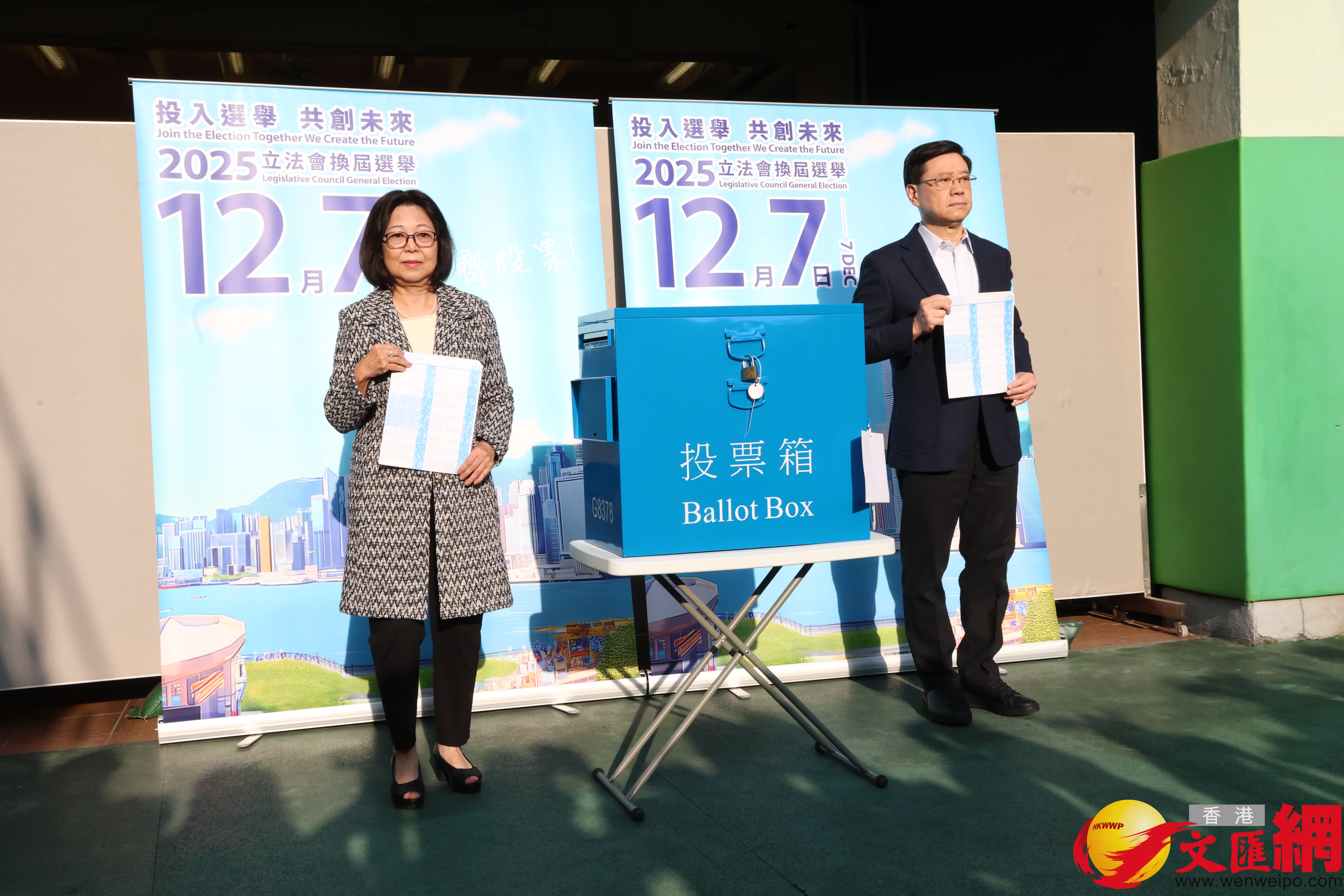(香港文匯報記者 嚴鍇華)第八屆立法會選舉今日(7日)舉行,香港特區行政長官李家超與夫人林麗嬋今早約8時半,到港島西選區羅便臣道高主教書院票站投票。