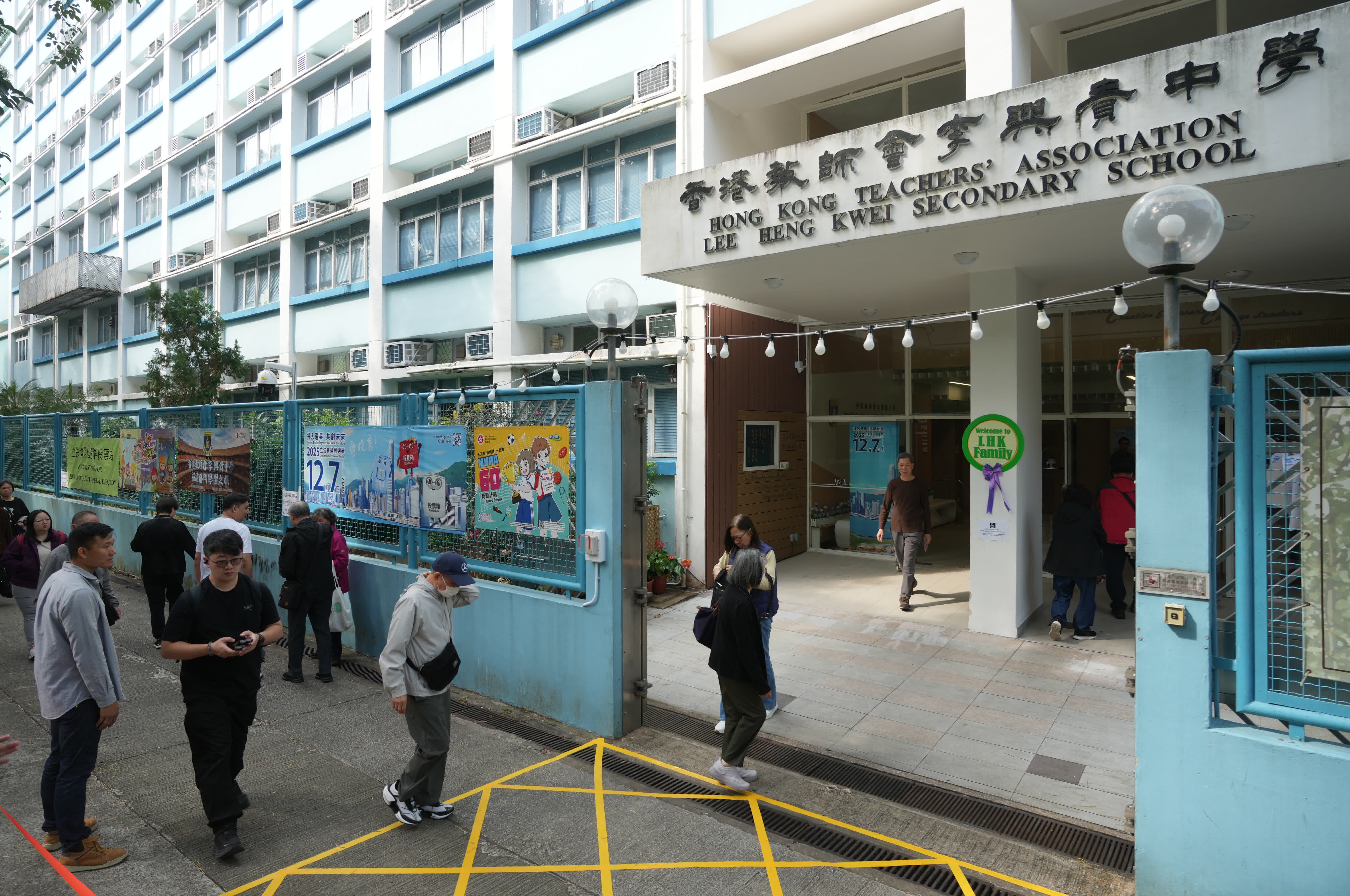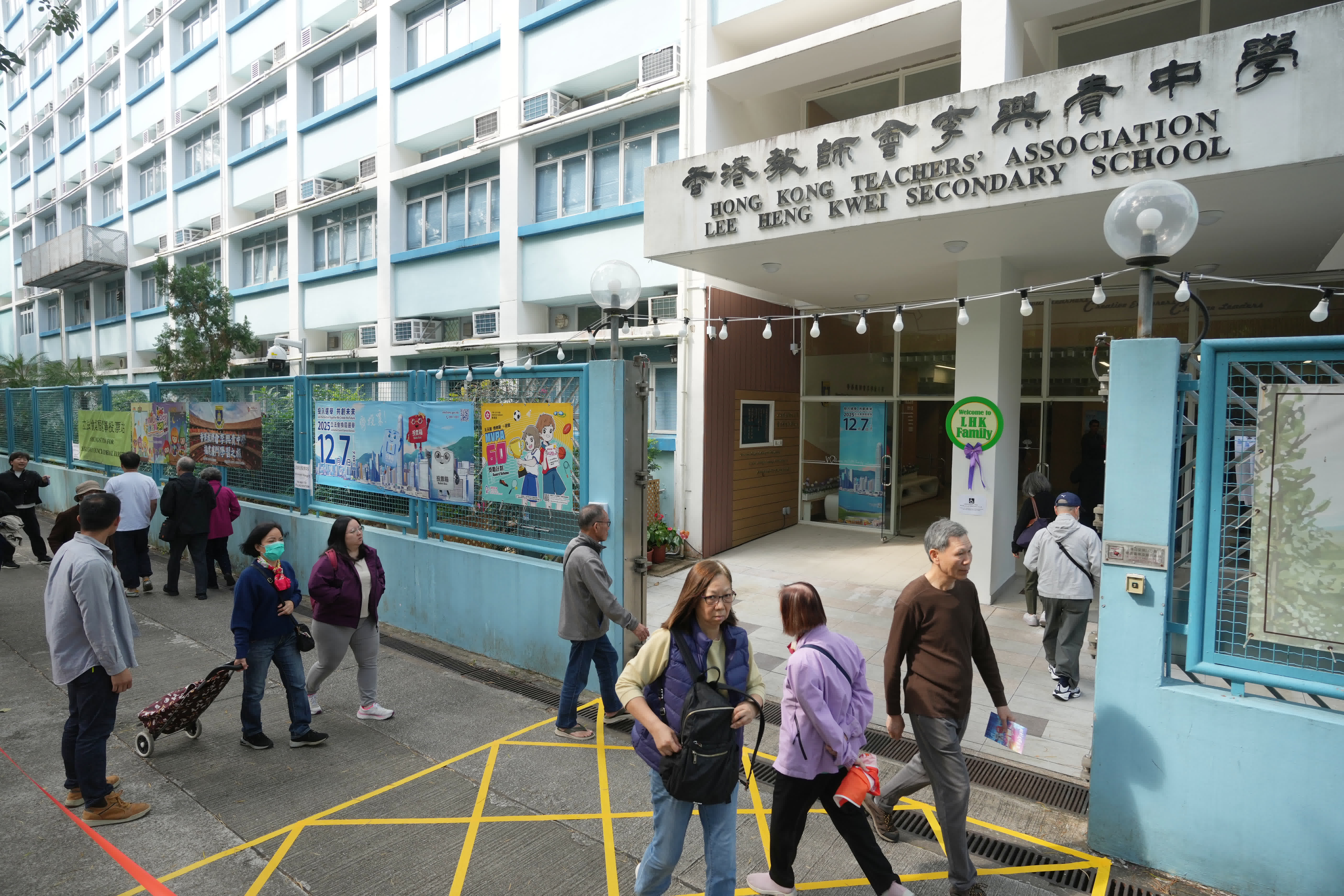 第八屆立法會換屆選舉今日(7日)舉行,大埔香港教師會李興貴中學立法會選舉投票站不少市民前來投票。(大公報記者黃洋港攝)大公報記者黃洋港攝