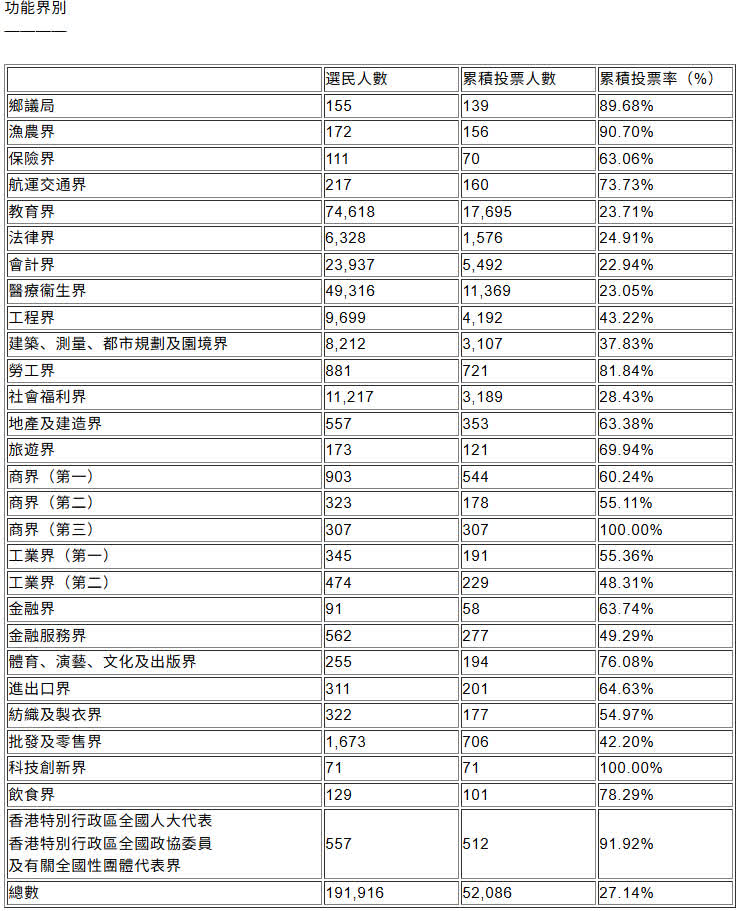 在功能界別方面,商界(第三)及科技創新界的選民已經全部投票。