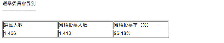選舉委員會界別方面,在1466名登記選民中,已有1410人投票。