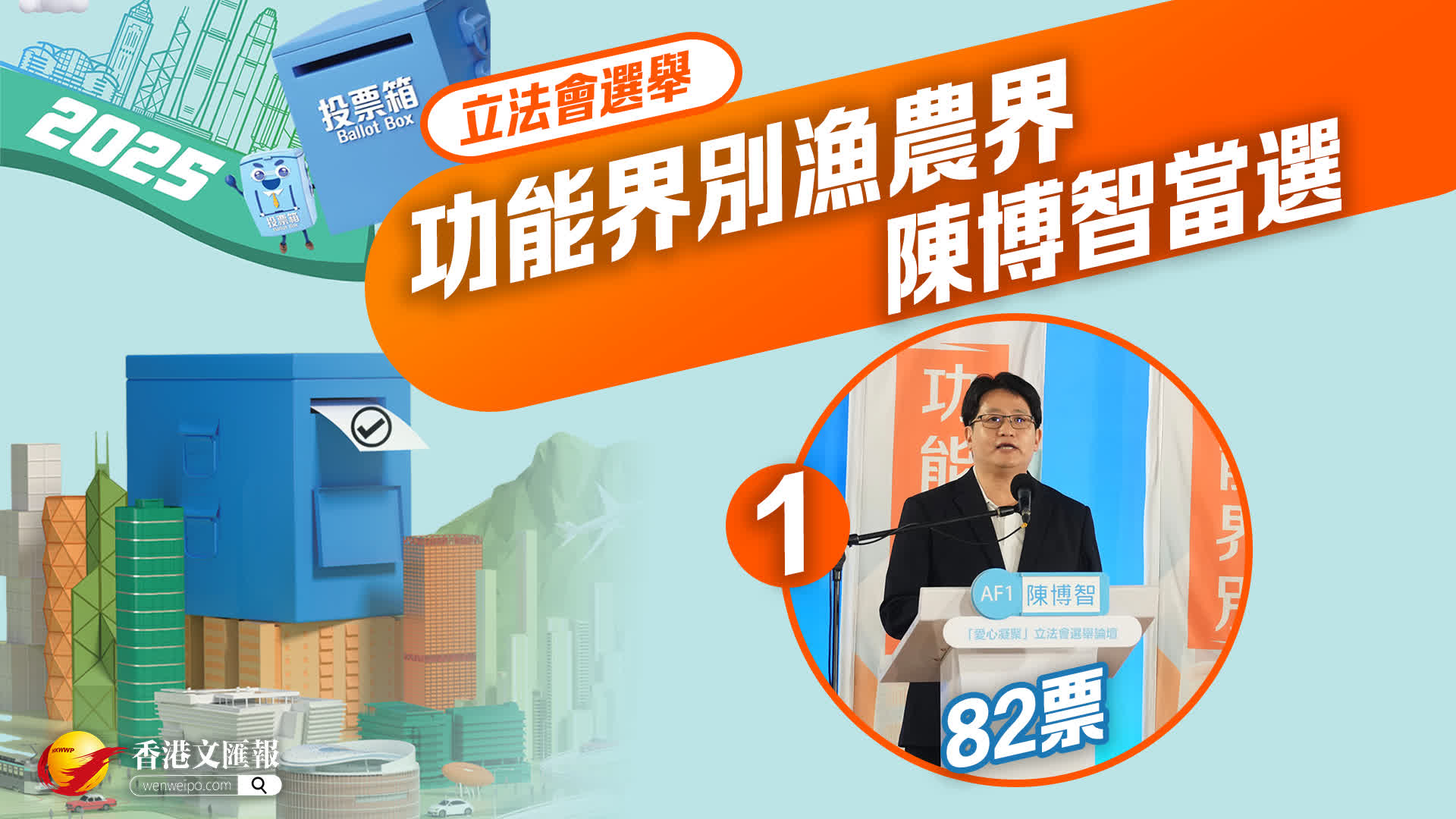 功能界別漁農界公布結果:陳博智(82票)擊敗楊上進(79票)成功當選。