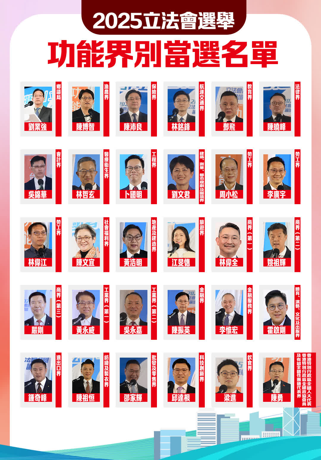 姚柏良、李家駒、文頴怡、吳傑莊、伍煥杰、劉智鵬、鄧銘心、樓家強、范凱傑、蘇紹聰、洪錦鉉、何俊賢、管浩鳴、吳英鵬、黃錦輝、陳永光、李鎮強、何君堯、林筱魯、陳恒鑌、何敬康、魏明德、范駿華、陳宗彝、陳凱欣、梁子穎、葛珮帆、朱立威、陳紹雄、林琳、莊家彬、李浩然、林振昇、黃國、黃錦良、簡慧敏、梁美芬、陳曼琪、陳祖光、陳仲尼