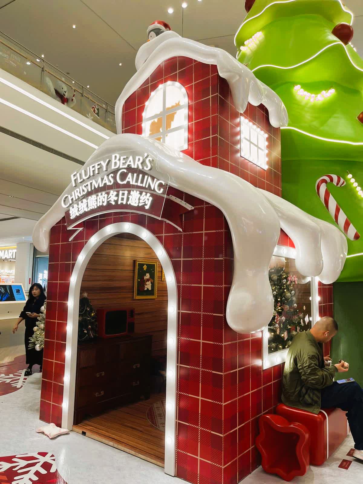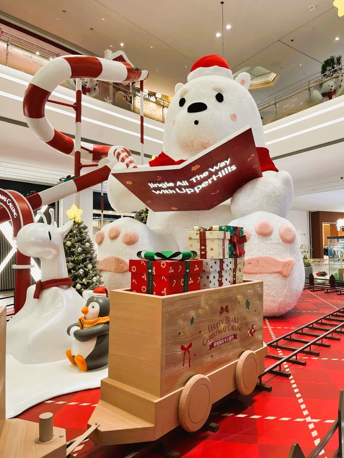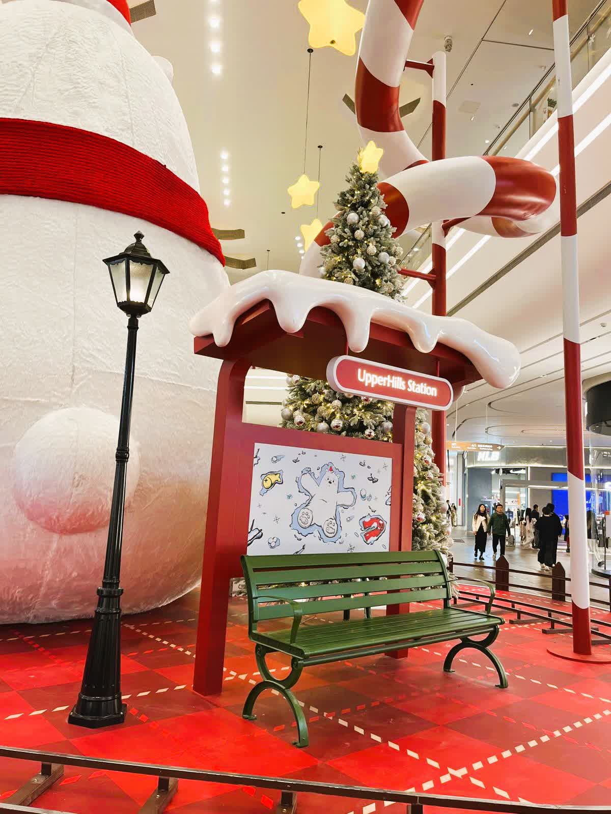 這個聖誕雪國小鎮,打卡最呃like必定是L1層中庭的「好朋友的冬日歡聚」,6.5米高巨型絨絨熊正在手持畫筆寫聖誕賀卡,其右手更會動,萌翻全場。牠身旁並有木製小火車,更有騎木馬的小企鵝、專心拆禮物的長頸鹿等打卡雕塑,加上整個火車路軌周邊有不同聖誕裝飾,如聖誕士的、薑餅人、不同大小類型的聖誕樹;另一邊廂,對面的11米高巨型聖誕樹及溫暖雪屋打卡位,配合屋內的歐式舊電視、吊燈及裝飾,令遊客如同置身聖誕歐陸小鎮一樣,齊齊「熊」抱浪漫。