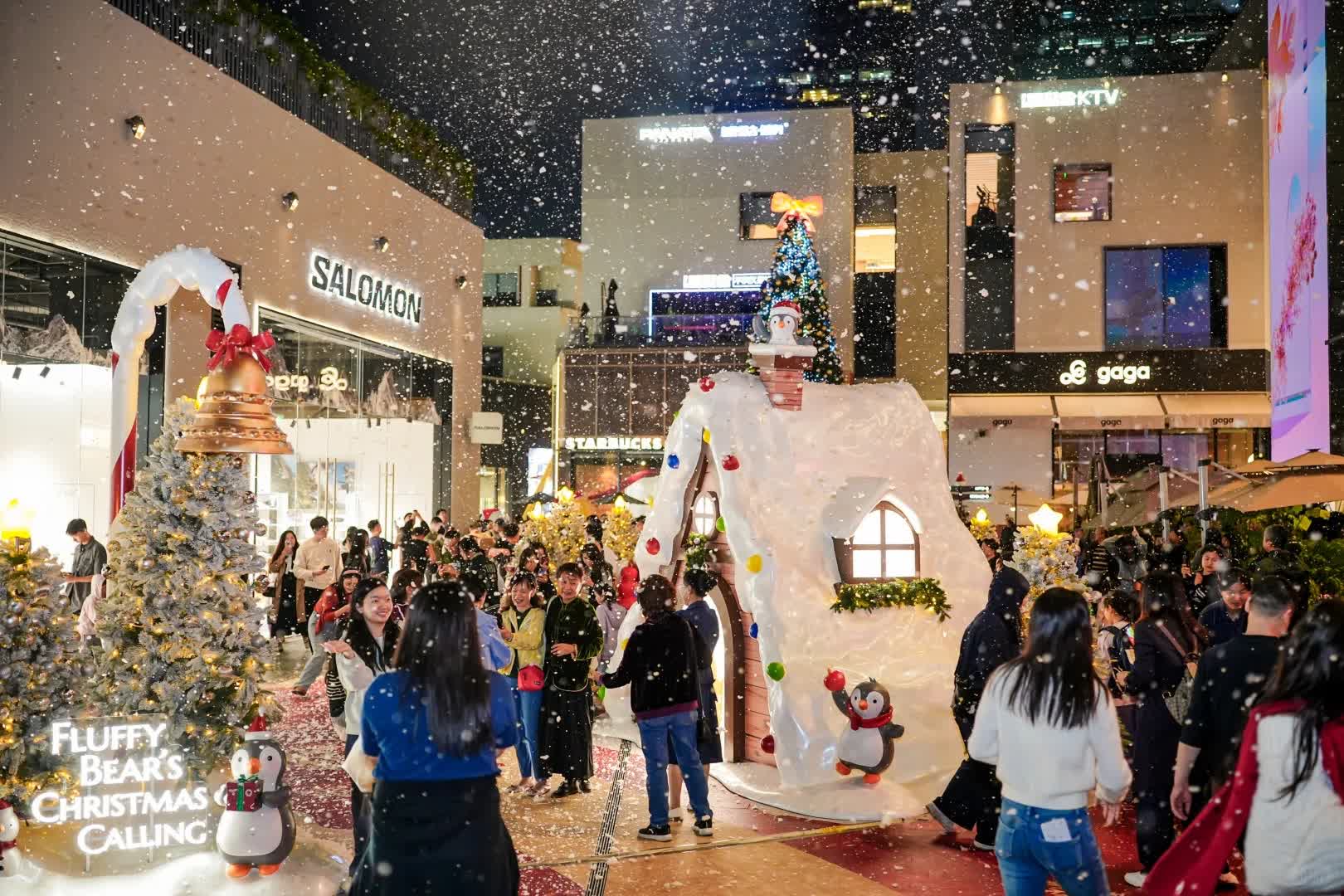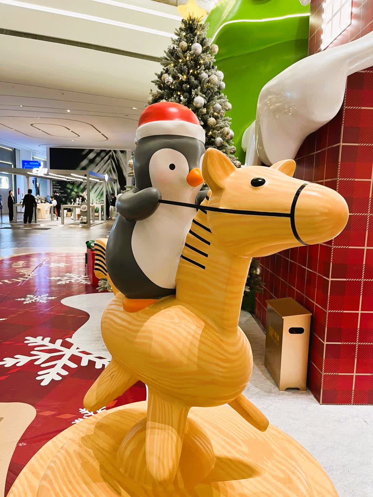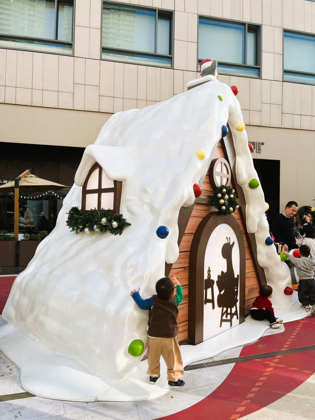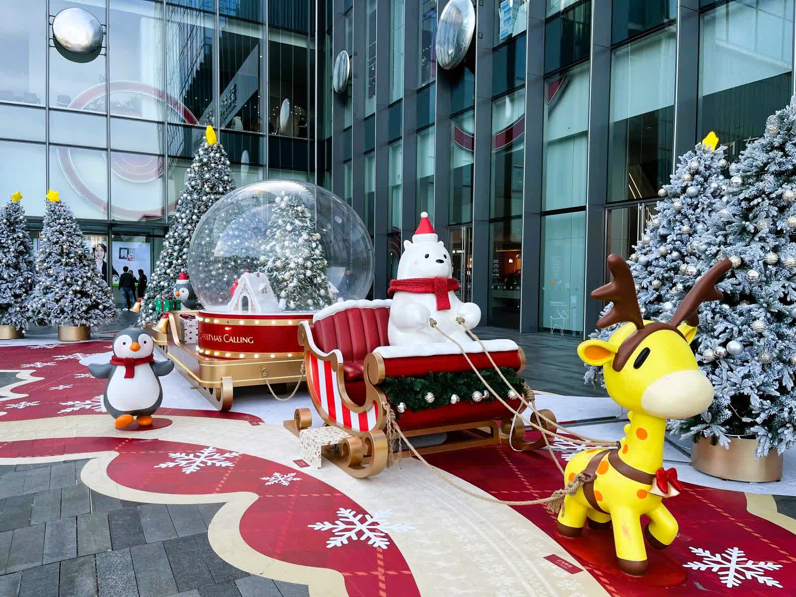 這個聖誕雪國小鎮,打卡最呃like必定是L1層中庭的「好朋友的冬日歡聚」,6.5米高巨型絨絨熊正在手持畫筆寫聖誕賀卡,其右手更會動,萌翻全場。牠身旁並有木製小火車,更有騎木馬的小企鵝、專心拆禮物的長頸鹿等打卡雕塑,加上整個火車路軌周邊有不同聖誕裝飾,如聖誕士的、薑餅人、不同大小類型的聖誕樹;另一邊廂,對面的11米高巨型聖誕樹及溫暖雪屋打卡位,配合屋內的歐式舊電視、吊燈及裝飾,令遊客如同置身聖誕歐陸小鎮一樣,齊齊「熊」抱浪漫。