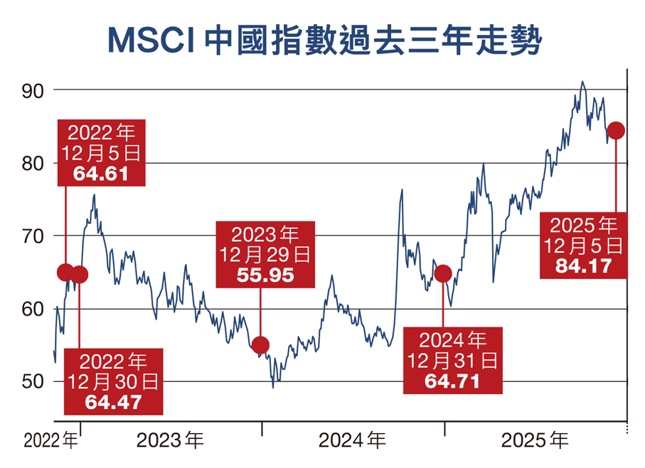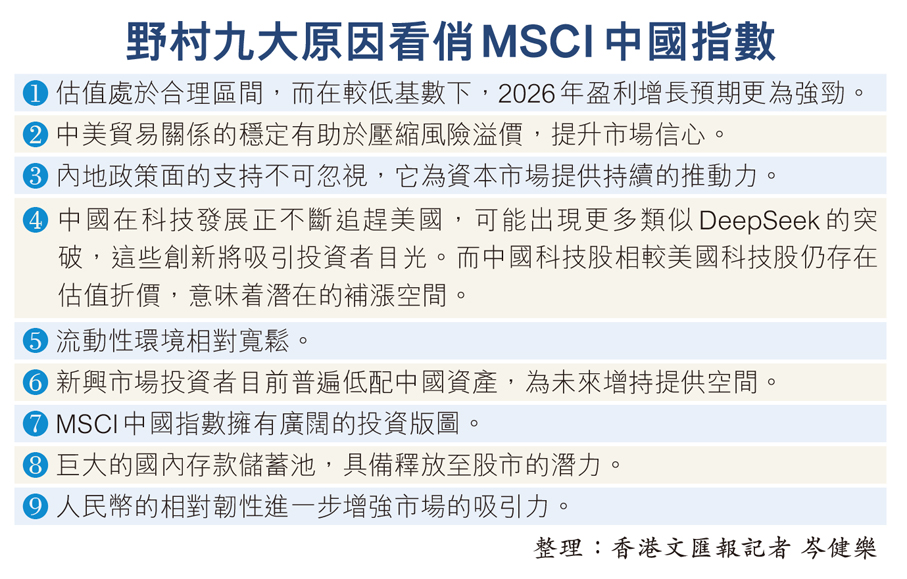 香港文匯報訊(記者 岑健樂)內地股市今年以來表現良好,野村亞太區股票策略師Chetan Seth昨日表示,該行對明年亞洲股市表現持積極看法,因預期美聯儲將繼續減息,令美元表現偏軟,加上亞洲經濟基本面穩健,區內企業盈利預期亦有所增長。他看好受惠人工智能(AI)產業持續良好發展的中國與韓國股市,料明年MSCI中國指數有望升至93點,較現水平有約10%升幅。另外,他建議投資者應進行均衡投資,避免集中於投資單一市場。