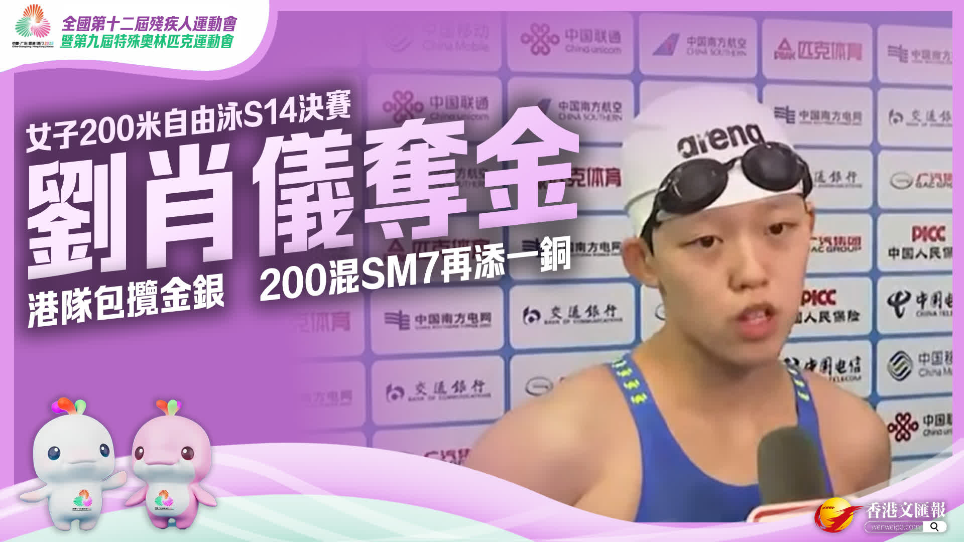 智力殘疾組泳手劉肖儀在女子200米自由泳S14決賽,以刷新全國紀錄的2分13秒50取得港隊今屆首面殘運會游泳金牌。另一名港將陳睿琳則以落後隊友0.1秒差距摘得銀牌。