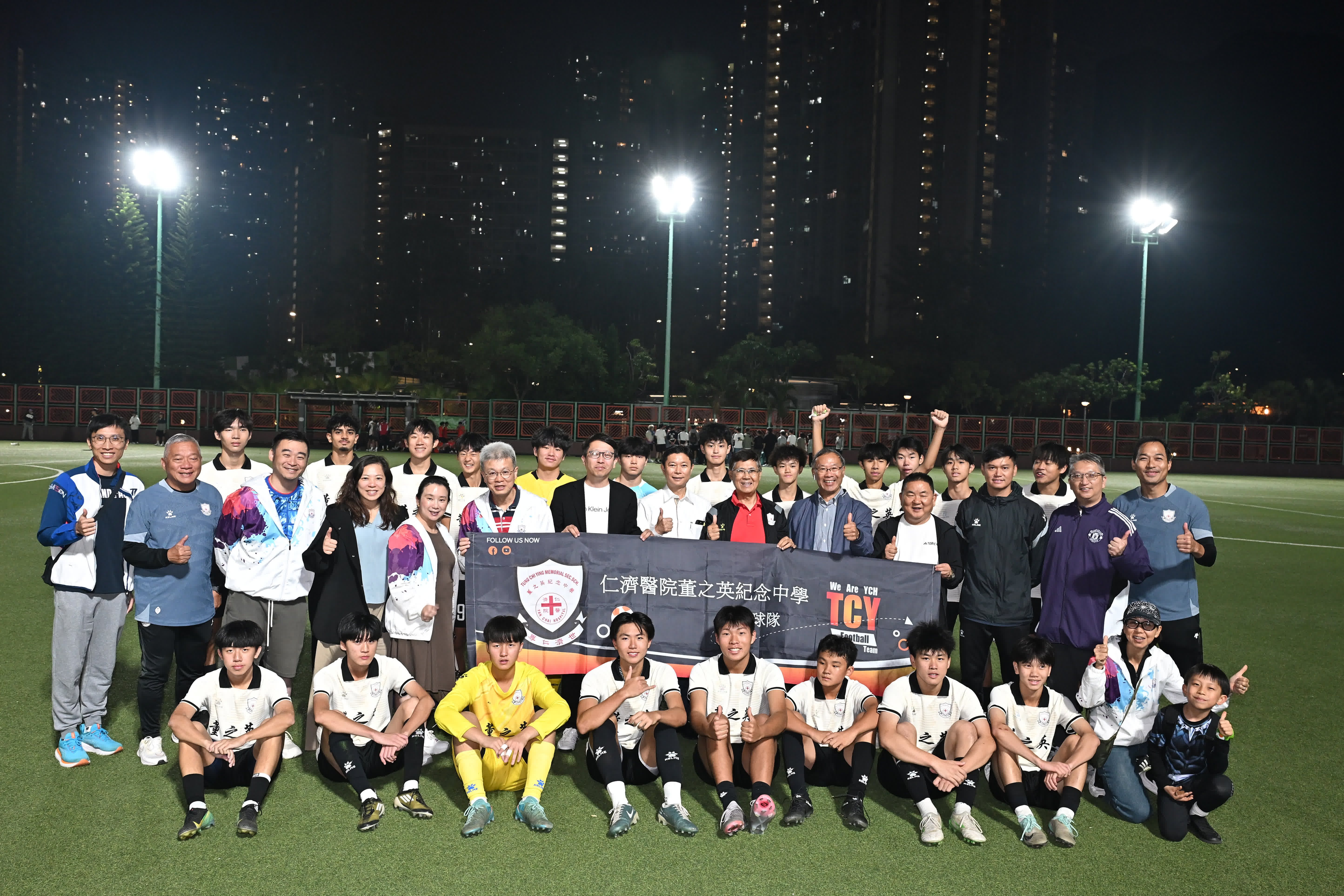 仁濟醫院董之英紀念中學校監黃偉健、副校監黃子文、校長黃攸杰等管理層都親臨球場,全程為球員打氣,並一同見證球隊奪冠榮耀,賽後跟球隊影大合照,紀念這個難忘時刻。