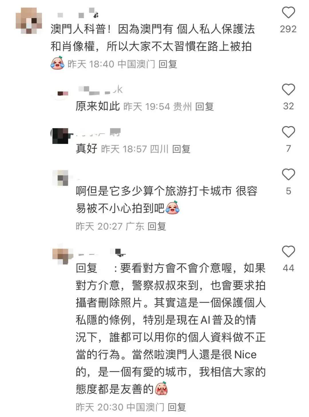 據公開信息,澳門法律交流協進會常務副會長、律師盧綺嵐表示,照片只有當事人自己是沒問題的,如果還包括其他人(即使是朋友),根據澳門現行法律規定,除非屬法律容許的情況,就必須徵得他們的同意,否則拍攝他人或公開相關照片的人有可能要負上民事法律責任,甚或走上犯罪的道路。這是因為每個人都有肖像權。