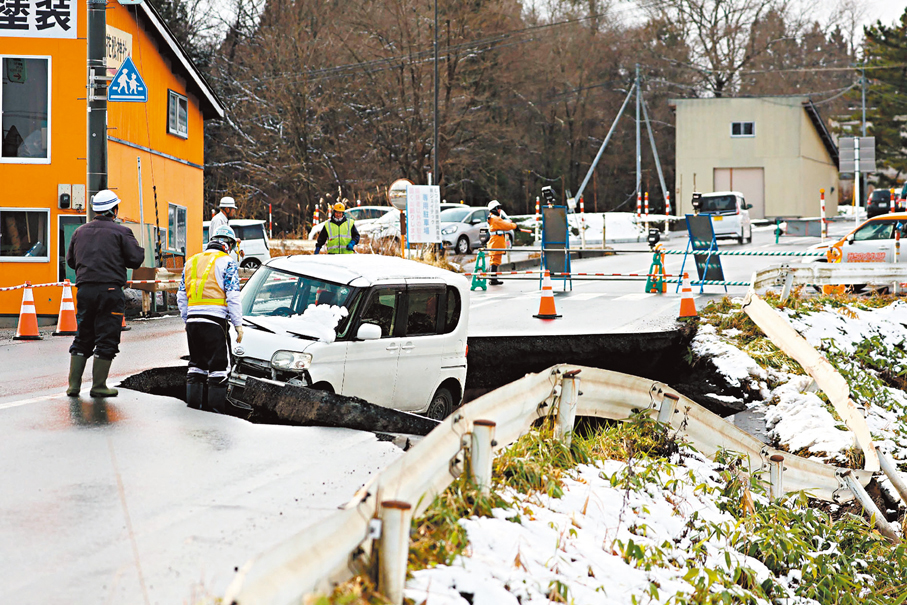 香港文匯報訊 日本本州東北青森縣東部海域周一(12月8日)晚間發生黎克特制7.5級地震,其後錄得多次4級以上餘震,截至周二晚間已導致至少50人受傷。北海道與東北4縣,即青森、岩手、宮城和福島縣一度有超過11萬人收到避難指示,需臨時前往避難設施。北海道新千歲機場亦受地震影響,部分天花板掉落。