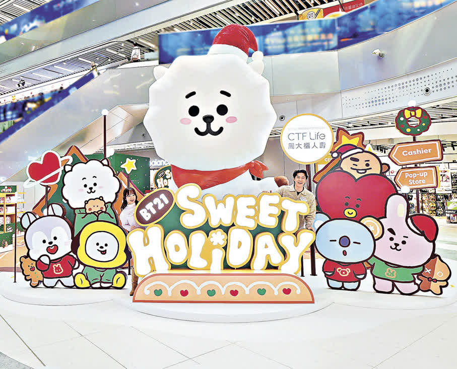 深受韓流粉絲們喜愛的卡通角色BT21也來到本港,要與大家度過一個浪漫冬日。BT21由紅遍全球的男團BTS(防彈少年團)成員親自參與設計,並在2017年推出。這系列角色以BT21的名義,將BTS和「21 世紀」結合,象徵着成為「21世紀的宇宙明星」的夢想,並擁有獨特的世界觀和故事線。 這次,BT21以主題體驗區的形式,由即日起至明年1月4日期間,在啟德零售館舉行活動。長達20米的BT21 THE JOURNEY主題巨型外牆打卡位,以夢幻紫色及流星為主要設計元素,讓你與BT21一齊沉浸於夢幻的宇宙中。體驗館內有多款互動遊戲,在「BT21人生四格自拍館」從14款相框中選取你最喜愛的4款,與你心儀的BT21成員同框,將這夢幻的一刻定格。另外還有光影躍動舞台、打氣應援區等,讓你近距離感受BT21可愛魅力。