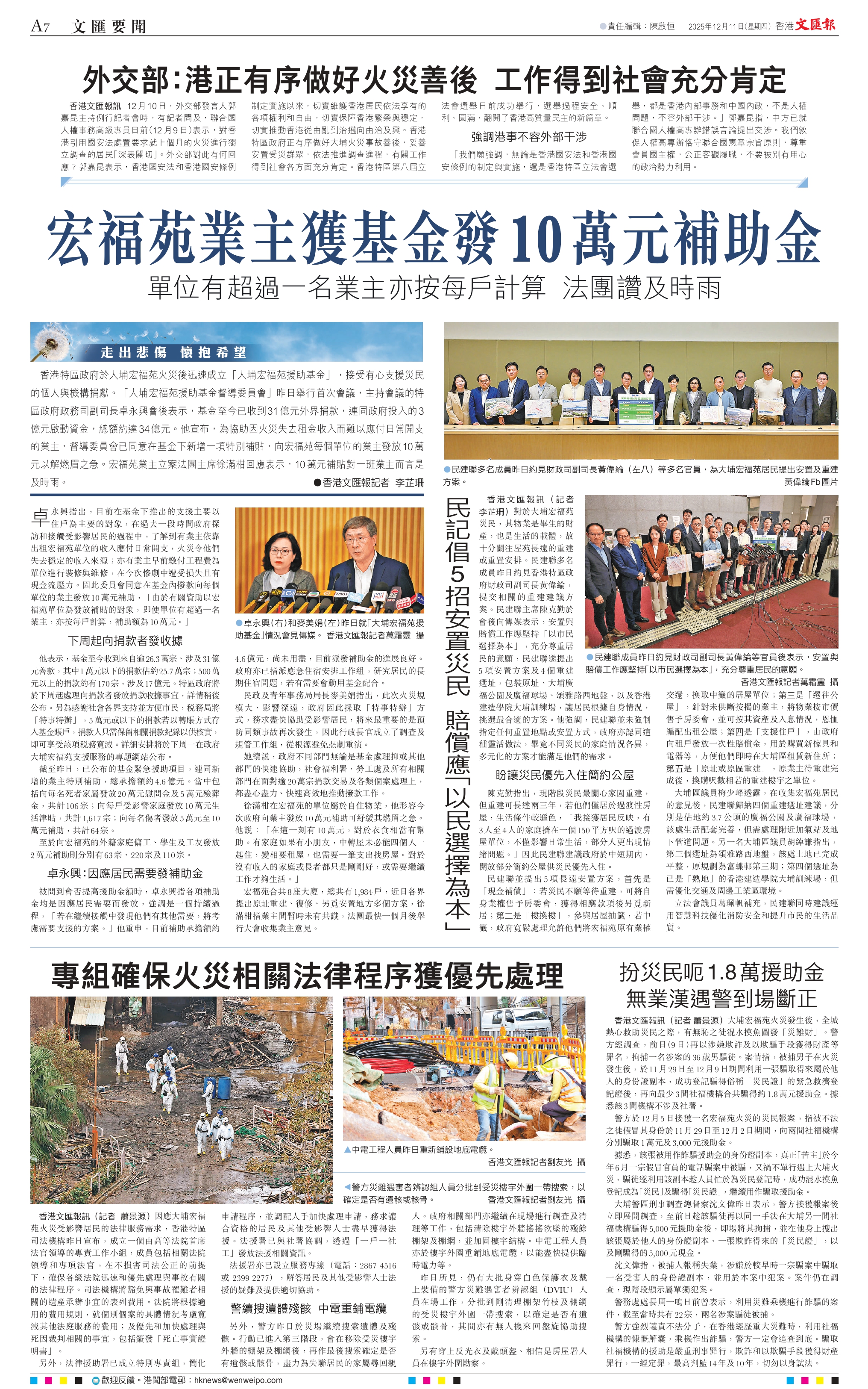 警方於12月5日接獲一名宏福苑火災的災民報案,指被不法之徒假冒其身份於11月29日至12月2日期間,向兩間社福機構分別騙取1萬元及3,000元援助金。