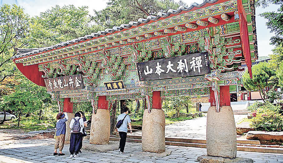 釜山金井區的梵魚寺與海印寺、通度寺一起被稱為釜山嶺南風格三大寺廟,也是華嚴宗十剎之一。該寺建於古朝鮮新羅文武王時期,歷史上高僧輩出,是著名的修行寺廟。位於以美麗溪谷和秀麗山勢著稱的金井山山腳,一年四季都有絡繹不絕的訪客。梵魚寺到處都擺放着石製文物。大雄殿入口的石燈採用統一新羅時代後期的樣式,具有很高的歷史價值。上下底座為對稱的蓮花,令人感受到端莊典雅且簡樸的新羅人的審美。