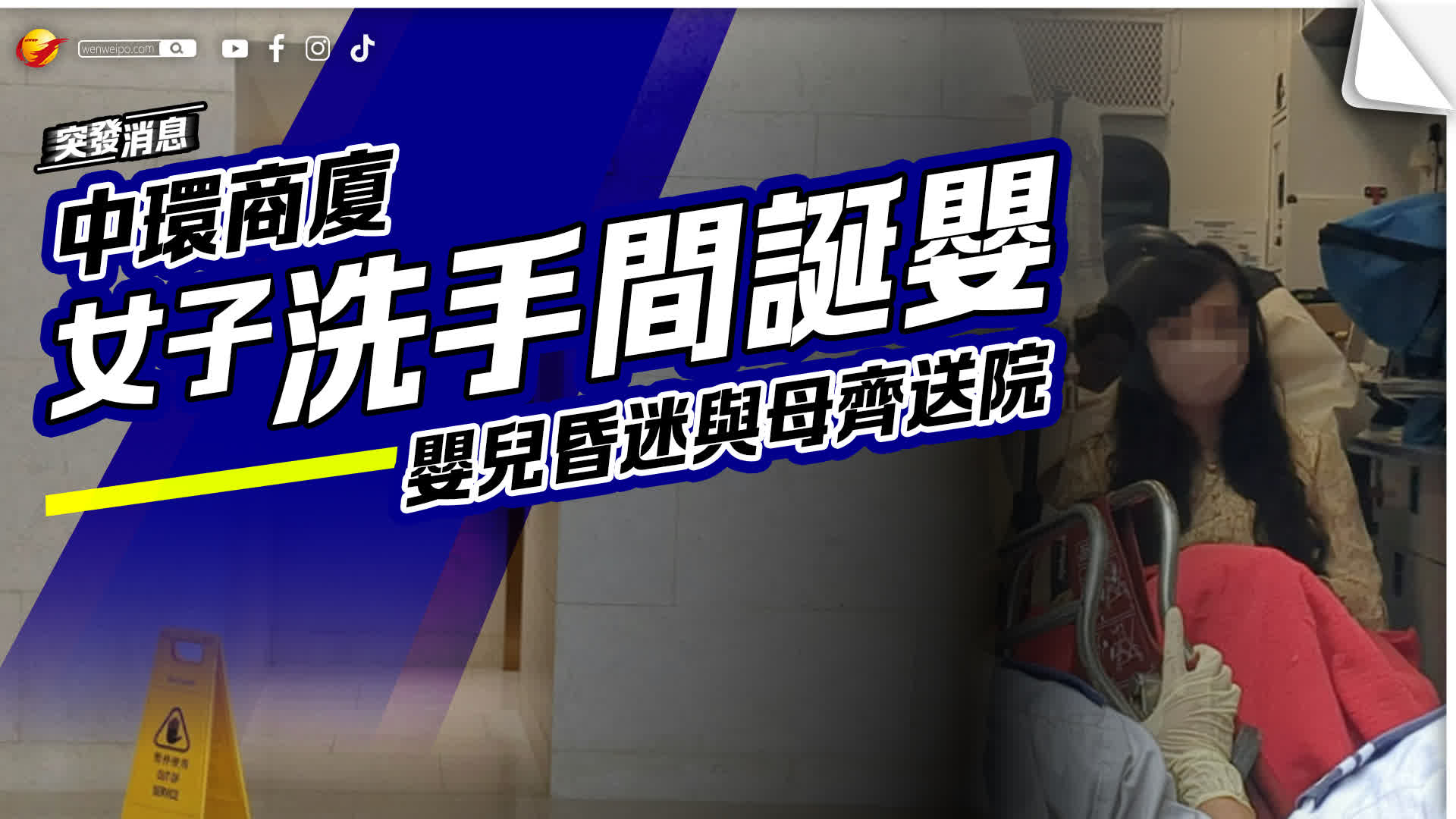據悉,在洗手間內誕嬰女子姓蔡(37歲),已懷孕32周,預產期是明年2月。今日事發前,蔡婦到上址求診,其後住洗手間突感不適,並在洗手間內誕下一名嬰兒,同行的一名60歲吳姓婦人見狀,立即報警求助。