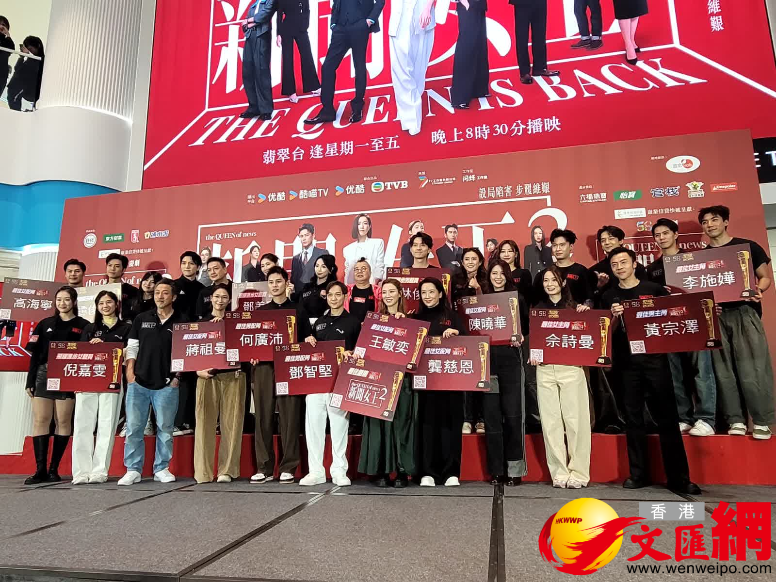 香港文匯報訊(記者 梁靜儀)王敏奕、陳曉華、龔慈恩(龔姐)、蔡潔、何廣沛、鄧智堅及張松枝等,今日以素色T恤到天水圍出席台慶劇《新聞女王2》宣傳,總監製鍾澍佳表示,因早前大埔宏福苑火災事件,劇組特別製作素色T恤,希望以莊重心情陪伴觀眾。活動上一眾有份提名《萬千星輝頒獎典禮2025》的演員趁機為自己拉票,王敏奕、何廣沛及鄧智堅均睇好龔慈恩奪「最佳女配角」。