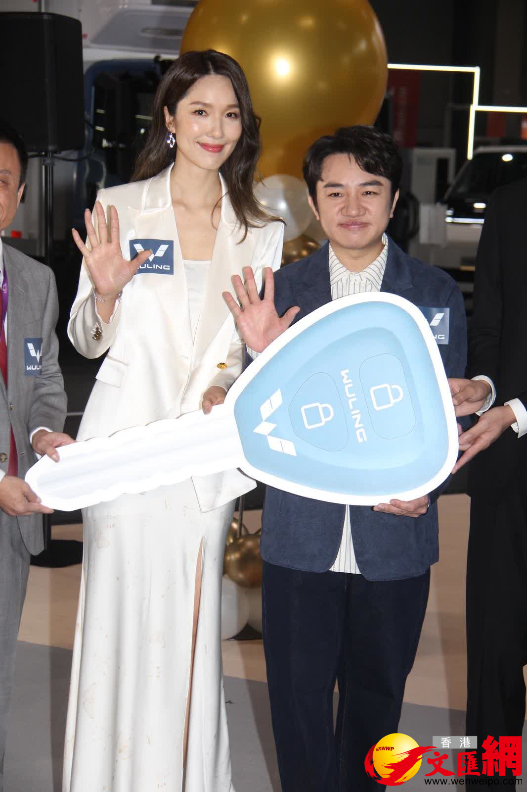 香港文匯報訊(記者 達里)陳山聰、葉蒨文、王祖藍與太太李亞男今日出席「香港國際汽車博覽2025」,陳山聰與葉蒨文分別替車商客串做「總裁」和「銷售經理」,王祖藍與太太李亞男則獲贈新款七人車。