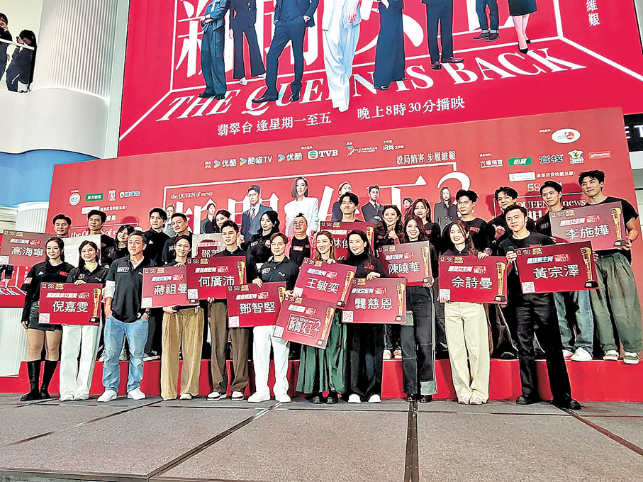 香港文匯報訊(記者 梁靜儀)王敏奕、陳曉華、龔慈恩(龔姐)、蔡潔、何廣沛、鄧智堅及張松枝等,昨日以素色T恤到天水圍出席台慶劇《新聞女王2》宣傳,總監製鍾澍佳表示,因早前大埔宏福苑火災事件,劇組特別製作素色T恤,希望以莊重心情陪伴觀眾。活動上一眾有份提名《萬千星輝頒獎典禮2025》的演員趁機為自己拉票,王敏奕、何廣沛及鄧智堅均睇好龔慈恩奪「最佳女配角」。
