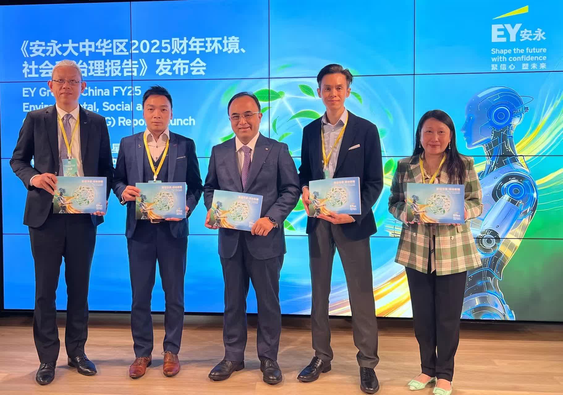 香港文匯報訊(記者 孫曉旭)安永大中華區昨日於北京、上海及香港同步發布《安永大中華區2025財年環境、社會和治理報告》。此次為安永連續第五年發布ESG報告,報告展現其在可持續發展領域的最新成果,並以「All in」戰略推動營運碳中和、科技賦能與人才發展。報告中亦指出,安永大中華區於2025財年透過購買國際自願碳標準項目(VCS)及綠色電力證書,首次實現運營層面的碳中和。