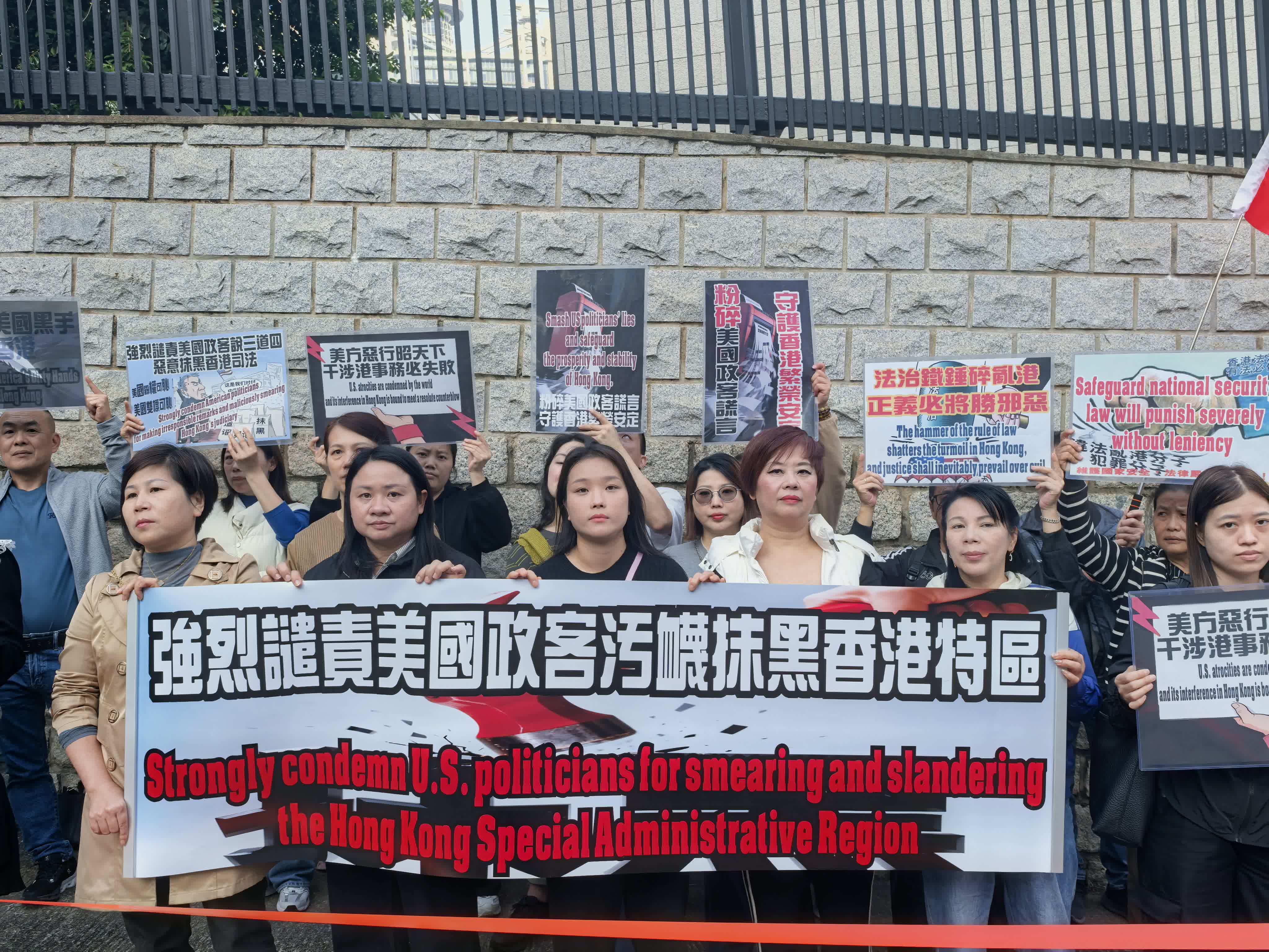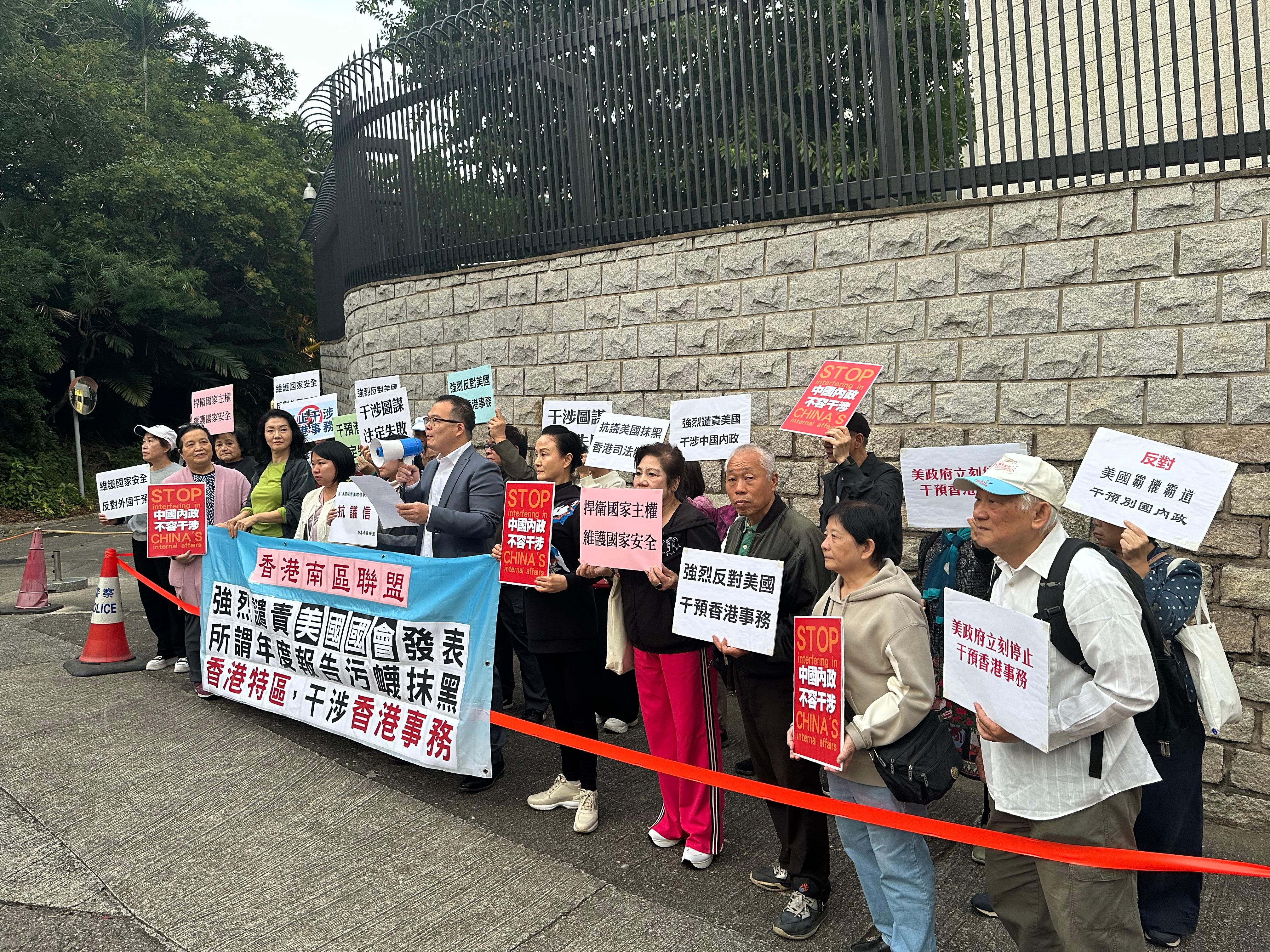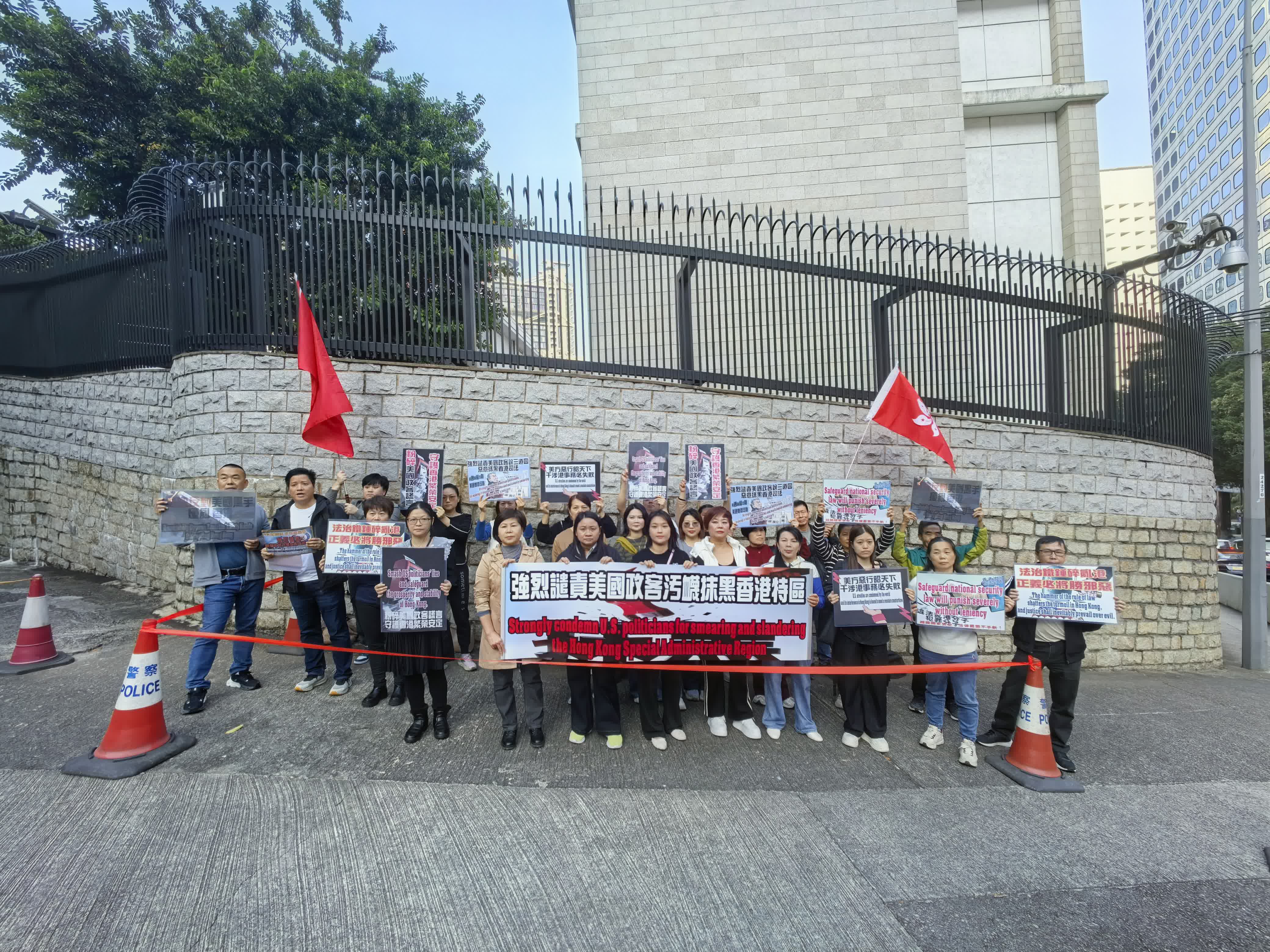 就美國「國會及行政當局中國委員會」發表的所謂「2025年報告」,針對香港特區各方面情況的失實言論和污衊抹黑,多個市民團體今日(12日)紛紛到美國駐港總領事館抗議,表達強烈不滿和堅決反對。