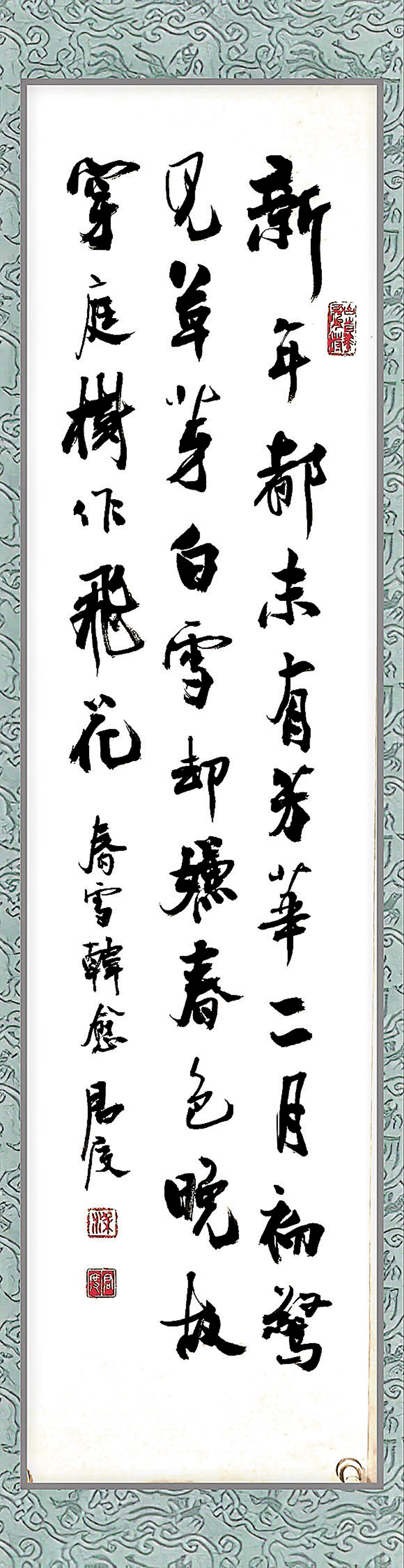 ●雪花穿過庭院中的樹木,像飛花一樣飄落。 AI繪圖