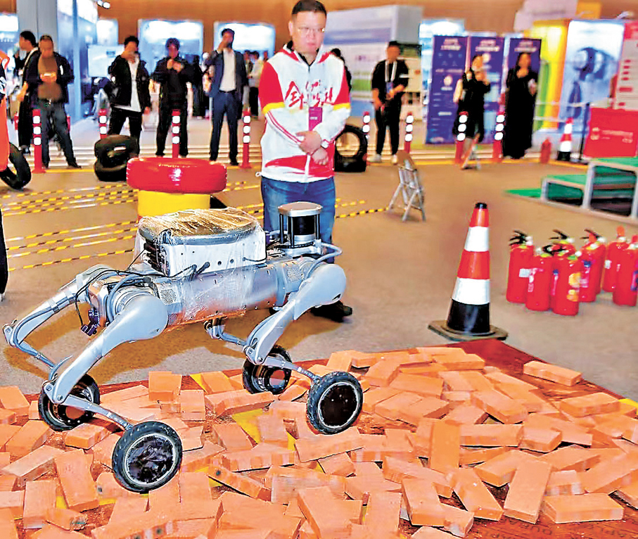 在現場香港文匯報記者看到,不少人工智能企業已經帶來了「鋼鐵騎兵」在應急救援賽道進行演練。一隻機器狗穿越「廢墟」、爬梯上坡、越過障礙最終到達目的地。「機器人在極限環境的救援其實還有長路要走,這不僅需要AI技術能夠過硬,特種機器人所需的的硬件材料如外殼、電池等都需要不斷實驗更新,但是全行業都在努力讓機器人走進千行百業,我們相信這次大賽只是一個起點,技術、產品、材料迭代問題會被攻克,在應急救援領域,機器人協助甚至獨立完成任務一定是發展趨勢。」魔法原子工作人員介紹。
